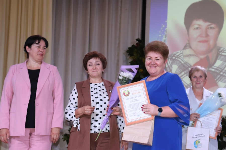 Собравшихся в зале также приветствовали настоятель храма Преоброжения Господня г. Березино иерей Василий Васильков, начальник инспекции по делам несовершеннолетних РОВД Татьяна Харевич, председатель райкома профсоюза работников образования и науки Людмила Толкач. Людмила Ивановна к тому же вместе с Алесей Титовой чествовали на сцене юбиляров системы образования Березиншины. Немало их было в зале. Среди них и бывший директор Селибской средней школы Татьяна Галузо, которая педагогической деятельности отдала 44 года, из которых 18 лет возглавляла названный коллектив.