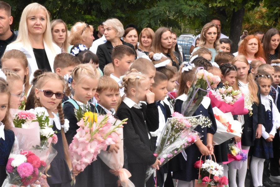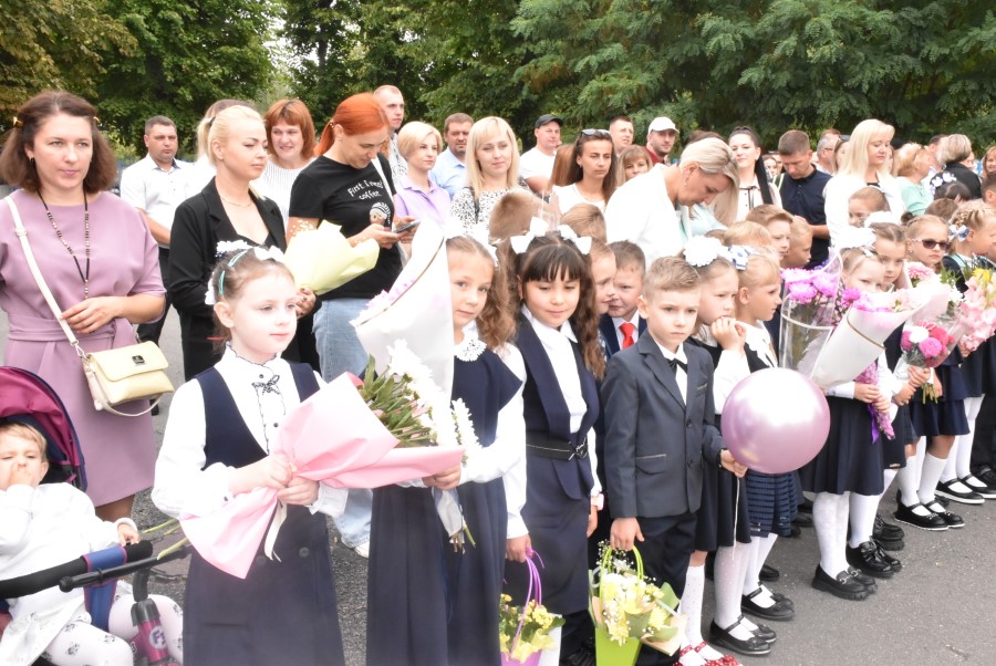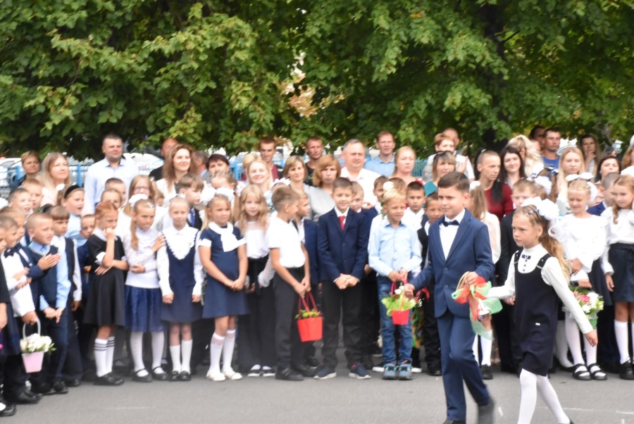 Трогательные выступления детишек, песни… И вот торжественный момент. Право дать первый звонок предоставляется ученицы первого класса Марии Слабко и ученику четвертого класса Илье Филиченку. В добрый путь, дорогие школьники!