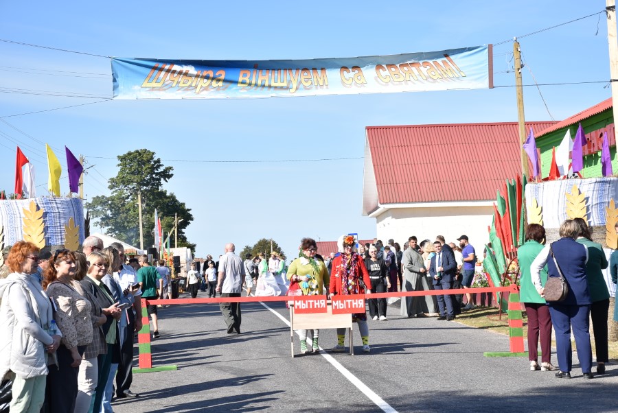 Прежде, чем попасть на главный праздник аграриев района, делегации районного исполнительного комитета и гостям праздника (о них мы расскажем позднее) пришлось пройти символическую таможню, на которой две колоритные женщины – сотрудницы этой ответственной службы, провели тщательный досмотр поклажи, а затем раздали свои шуточные подарки явившимся гостям.