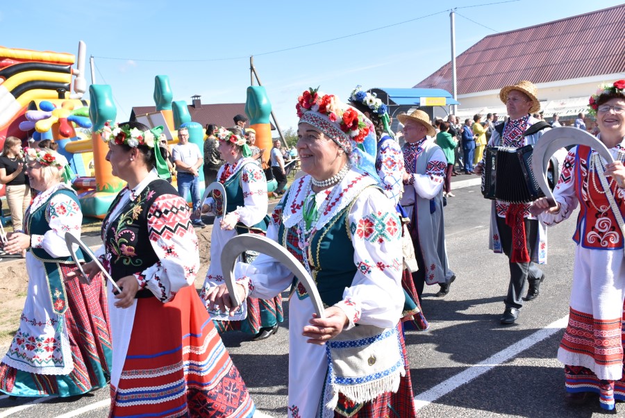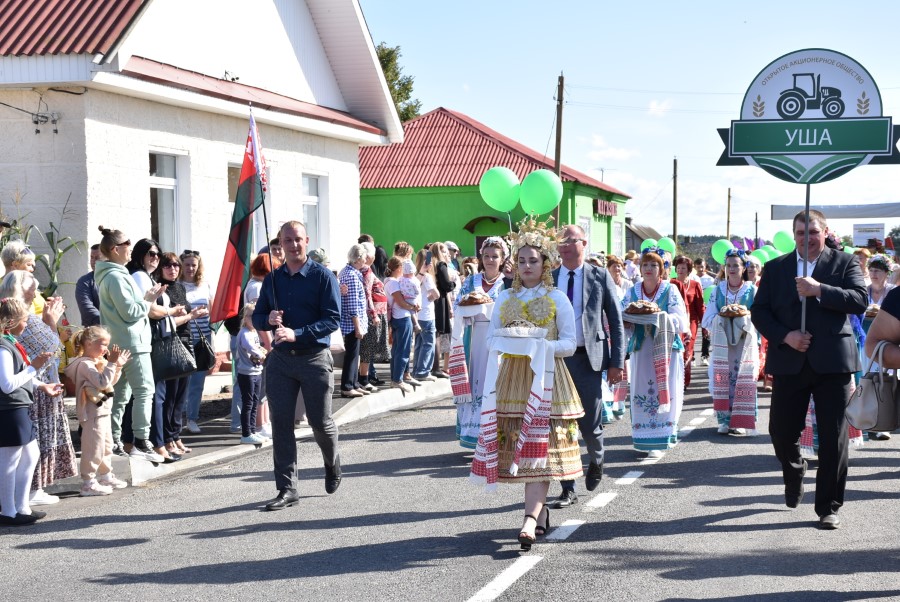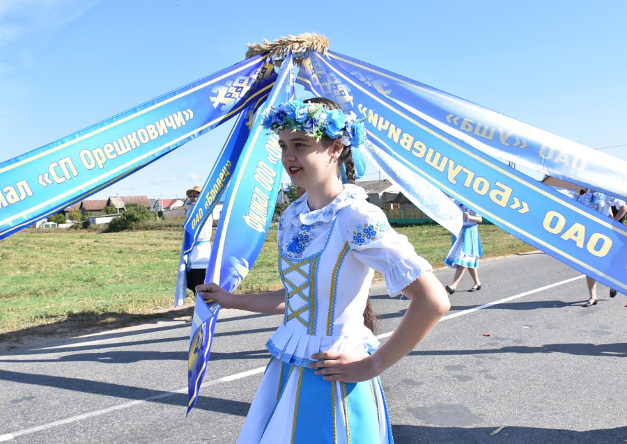 Следующими движение продолжали молодые специалисты – те, кому доверена продовольственная безопасность страны, кто будет продолжать славные традиции березинских хлеборобов и землепашцев. Продолжением шествия стало прохождение колонн сельхозпредприятий, во главе каждой из колонн – девушка в наряде жнивы, который создали работники этого хозяйства и творческие коллективы района. А возглавляет каждую колонну руководитель хозяйства. Это благодаря их усилиям, их труду достигнут сегодняшний результат жатвы и проведена она была в оптимальные сроки.