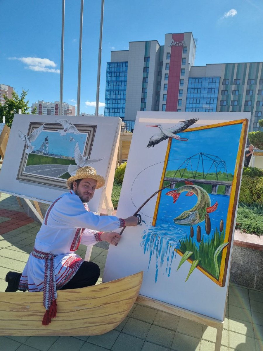 Картины от учреждений культуры Березинского района на областных Дожинках-2023 в г. Солигорске.