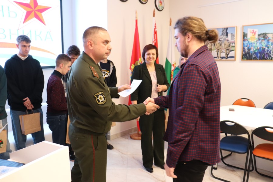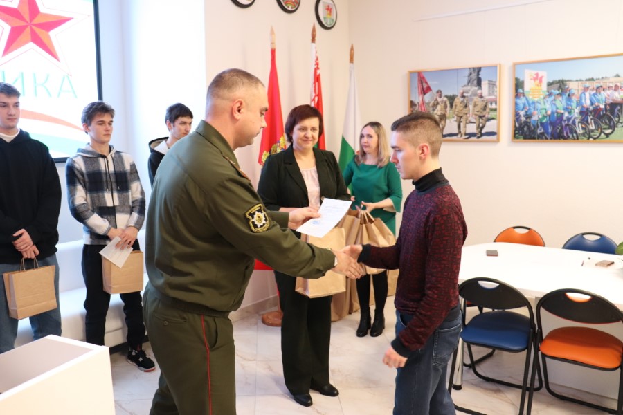 Затем начальник обособленной группы Березинского района военного комиссариата Червенского и Березинского района Минской области Максим Клюев вручил каждому по повестке, а Татьяна Лученок – по подарку.