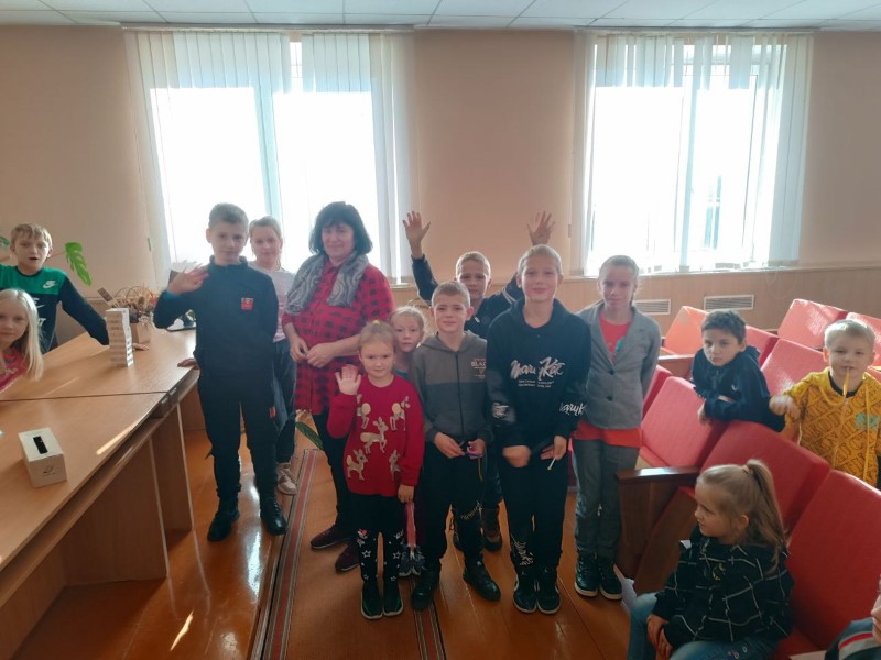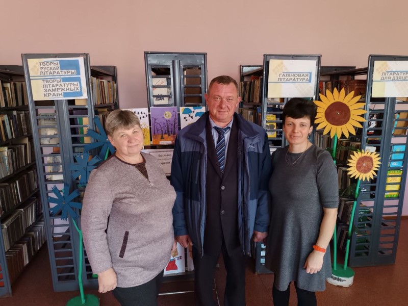 В здании сельсовета, где сейчас ведется ремонт фасада, также находится сельская библиотека. Вместе с Алексеем Михайловичем решили посмотреть на мероприятие для детей, которое проходило там. Во время детской «продленки» с ребятами занималась Валентина Насковец, которая рассказала, что кроме жителей Поплав, книги доступны читателям и в самых отдаленных деревнях.