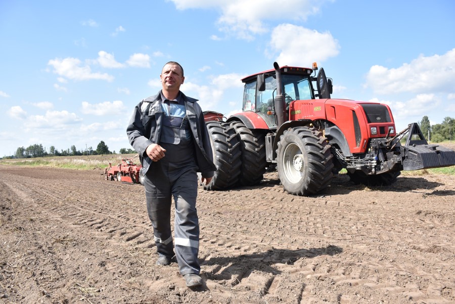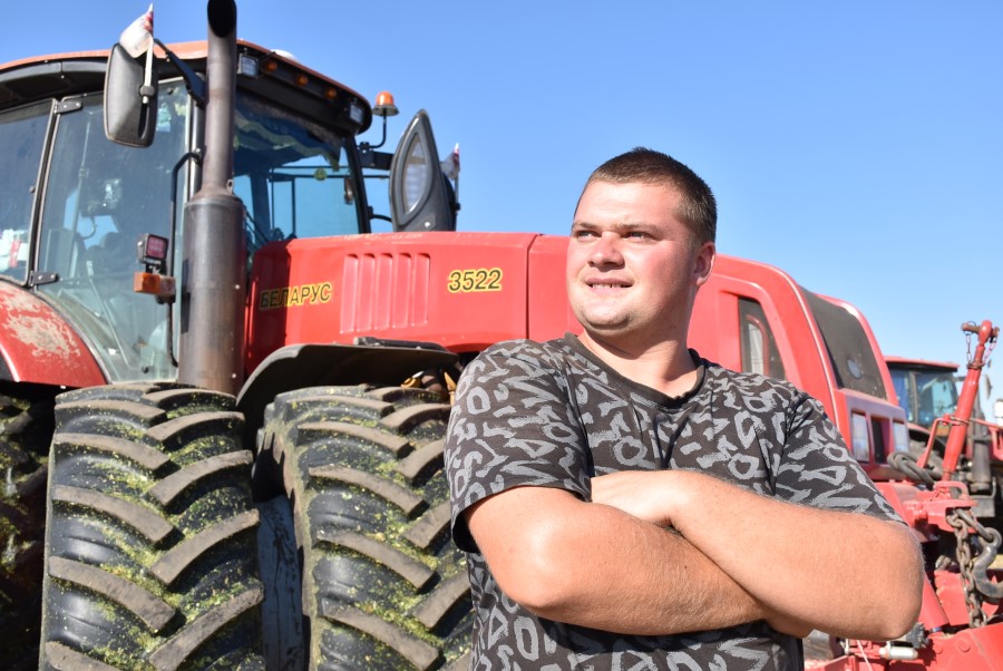 Без трактора в сельском хозяйстве никак, без энергонасыщенного – тем более. Сейчас Антон Самец задействован на внесении органических удобрений. В другие периоды трудится на заготовке кормов и других работах. Как говорит он сам: «Сеем, пашем, косим, делаем всё, что требуется».
