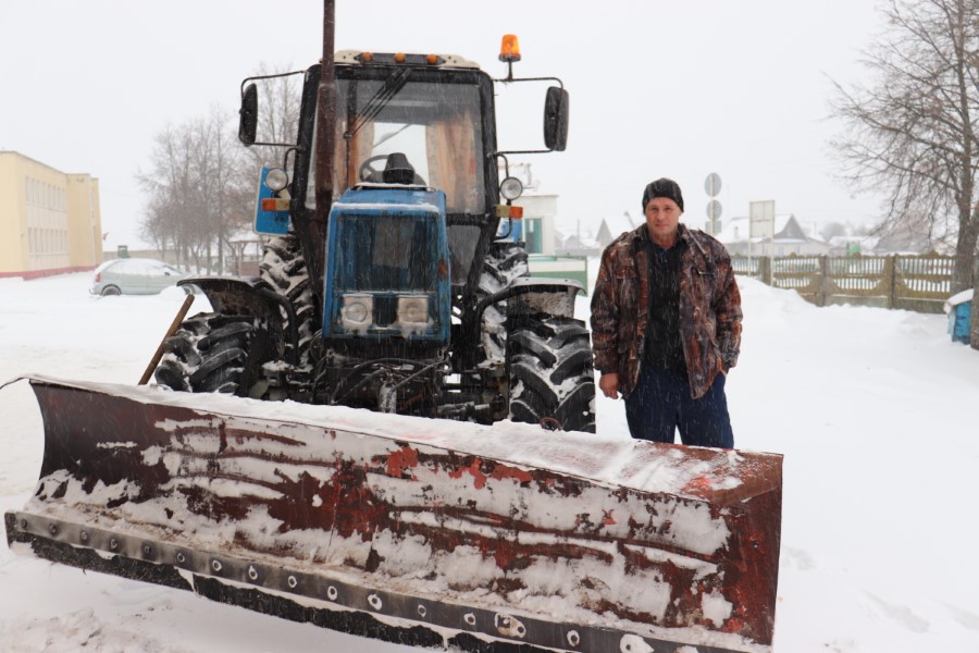 Тракторист Дмитрий Примаченок перед очередным выездом в рейс для очистки дорог маческо-дулебского направления.