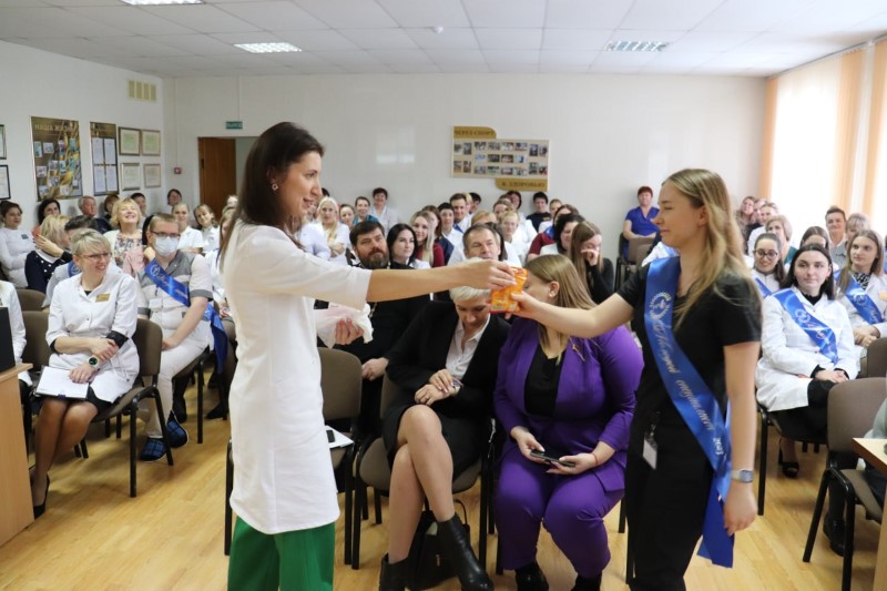 Поздравили молодых врачей и медицинских сестёр главврач Кристина Крук, заместитель главного врача по медицинской части Валентина Лущик, заместитель главного врача Татьяна Ермакова, главная медсестра Татьяна Липницкая. Были также подарки и сердечные пожелания. От лица профсоюзов к молодым специалистам обратилась председатель районного объединения профсоюзов Елена Токан. Благочинный Березинского церковного округа протоиерей Илья Гончарук подарил каждому Святое Писание. Первый секретарь Березинского райкома БРСМ Екатерина Аврамчик преподнесла сладкий приз. Главврач Кристина Крук вручила каждому молодому специалисту медицинские сертификаты, подтверждающие принадлежность благородной профессии. Было сказано много тёплых слов и напутствий. Наделённые художественным талантом медики исполнили несколько музыкальных номеров.