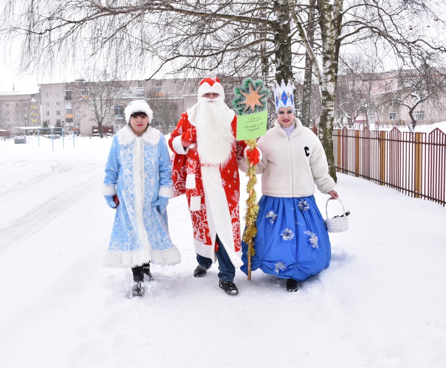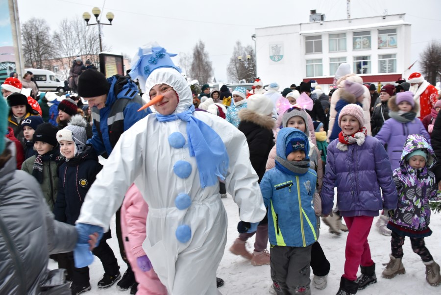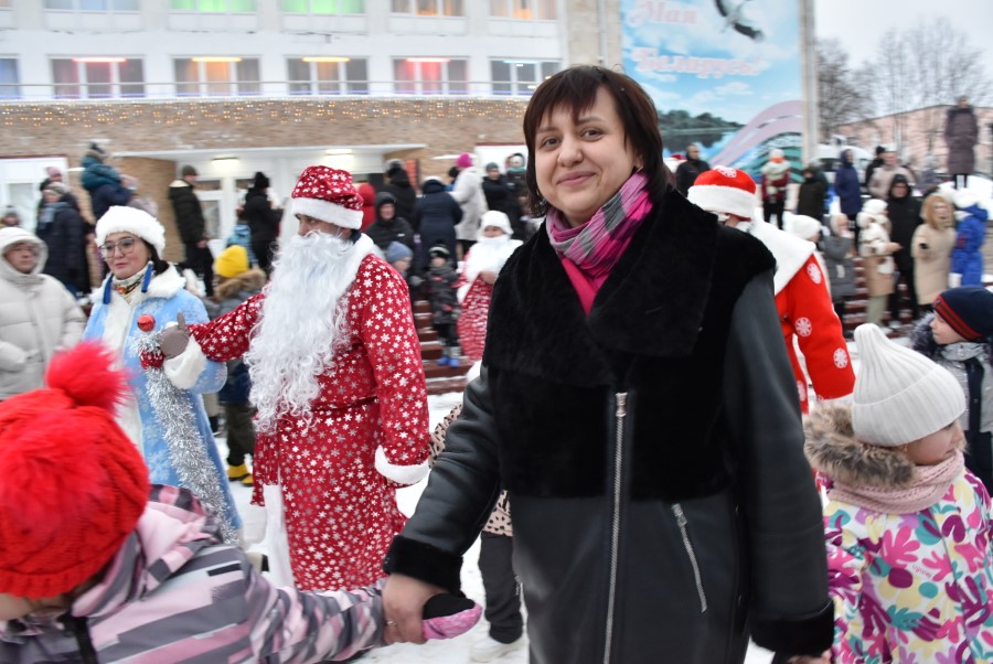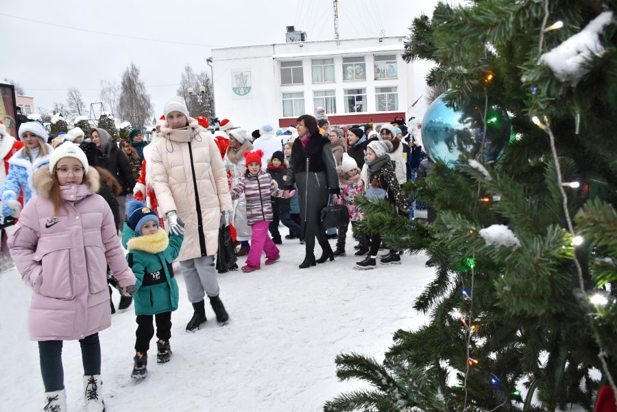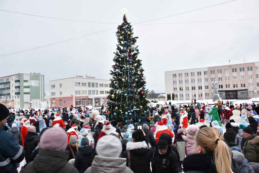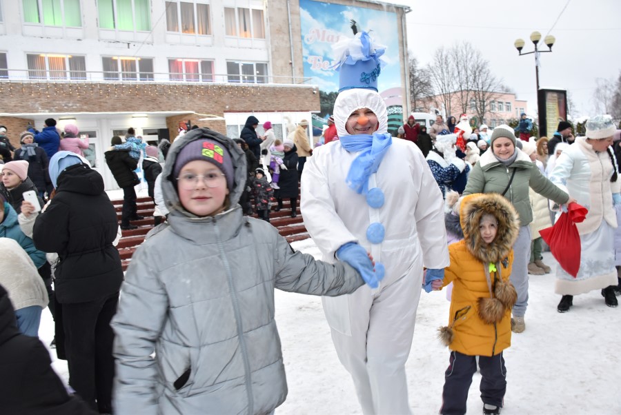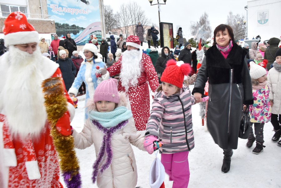 На городской площади гостей и участников шоу встретил самый главный Дед Мороз Березинщины, в роли которого выступил Николай Пытляк – человек, не нуждающийся в представлении. Под задорную песню и знакомые всем с детства волшебные слова: «Раз-два-три, ёлочка, гори!» зажглись огни на лесной красавице, и начался хоровод.