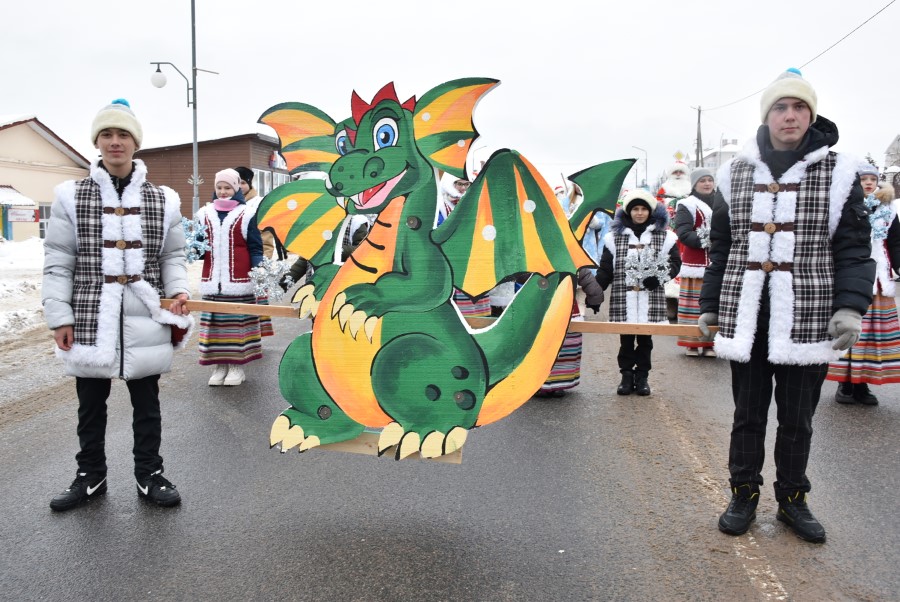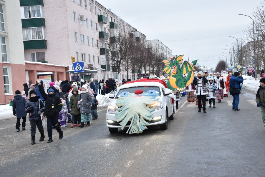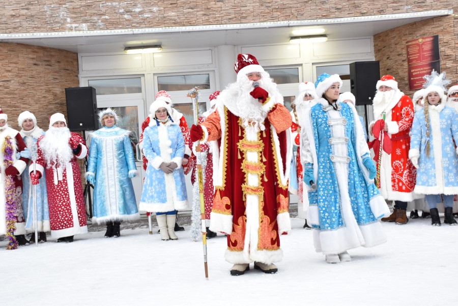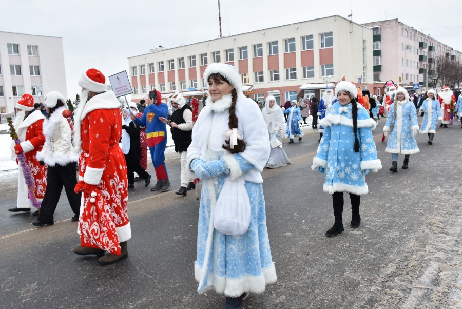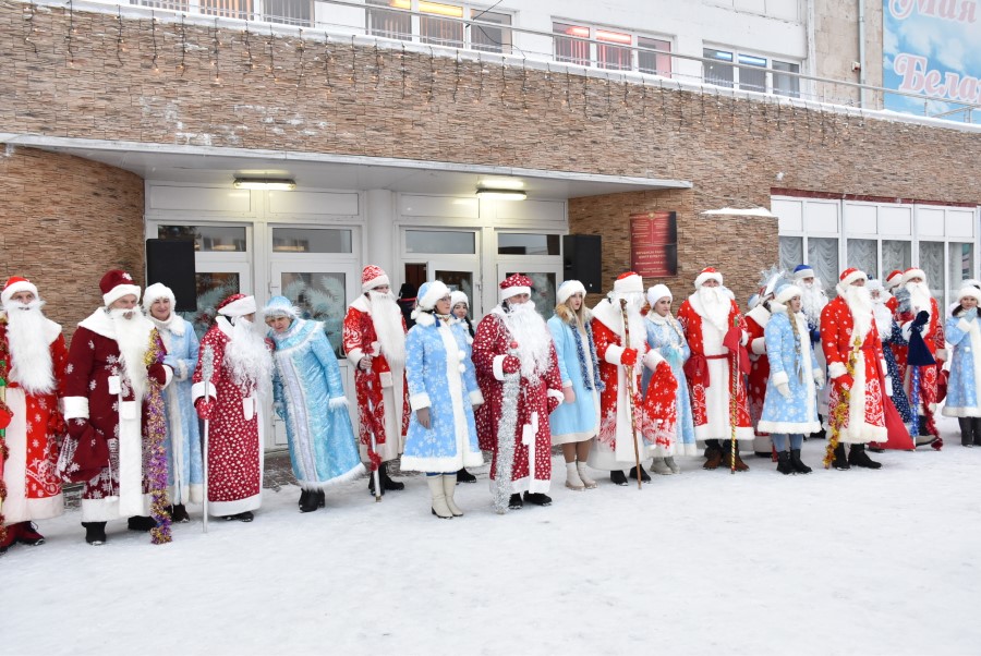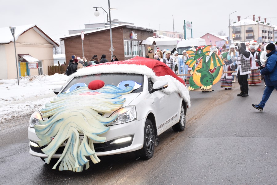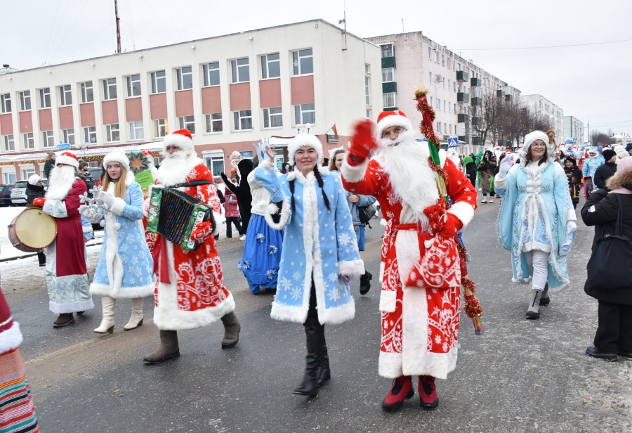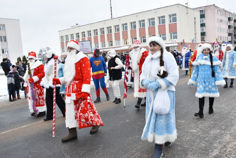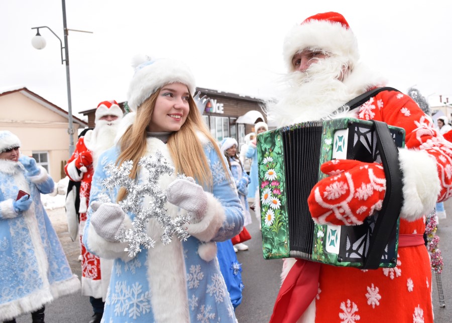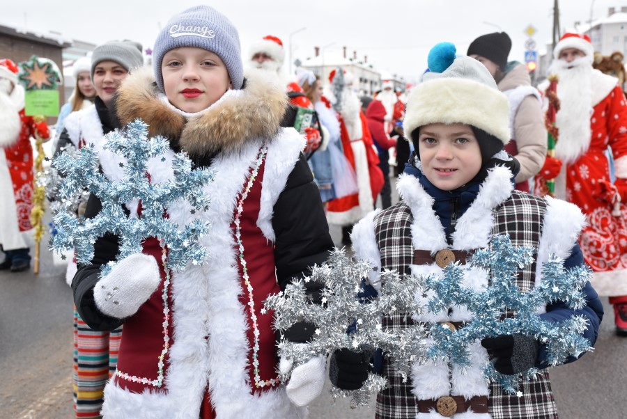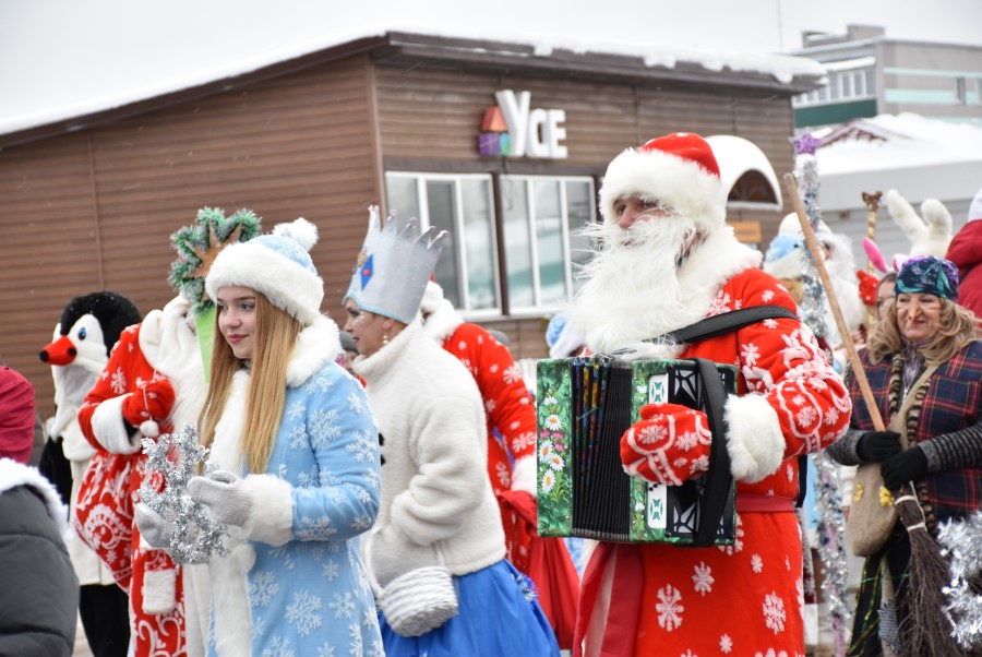 С песнями под гармошку и бубен участники шествия приветствовали собравшихся зрителей. В глаза бросалось в первую очередь разнообразие костюмов участников шоу, кроме Дедов Морозов и Снегурочек можно было встретить Бабу Ягу, Снеговика, Зайчика и прочих сказочных персонажей. В плане организации мероприятия, художественного решения по костюмам и постановке праздника представители культурной сферы, трудовых коллективов учреждений и организаций города подошли креативно и творчески.