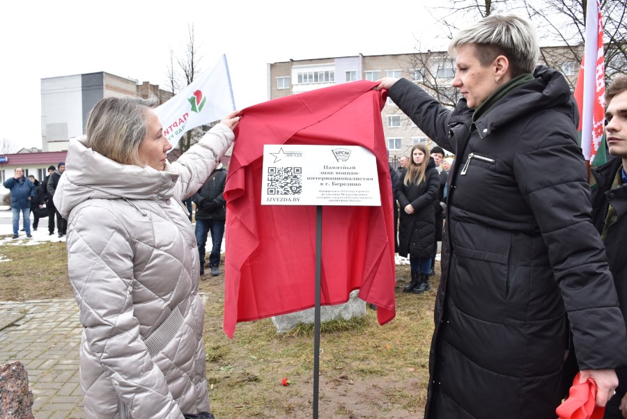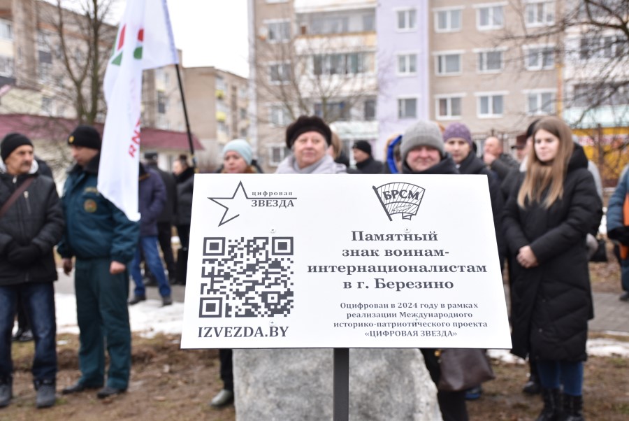 В рамках проекта «Цифровая звезда» в Республике Беларусь проводится оцифровывание памятников и мемориалов. Этот процесс включает в себя установку информационных табличек с нанесенным QR-кодом, перейдя по которому, каждый может ознакомиться с подробной информацией о военных событиях именно в этих местах. Причем, это не просто информационное изложение отдельных справочных материалов, а живой и эмоциональный рассказ с включением воспоминаний очевидцев, историей конкретных людей. Право произвести торжественно открытие стилизованной таблички с QR-кодом у памятника воинам-интернационалистам Березинщины предоставлено заместителю председателя райисполкома Ольге Колячко и первому секретарю районного комитета БРСМ Екатерине Аврамчик.