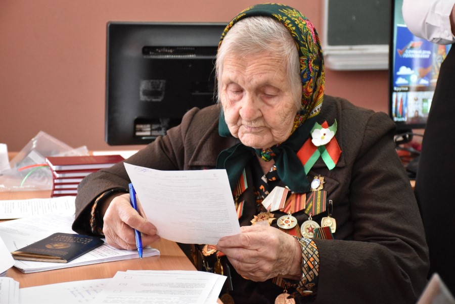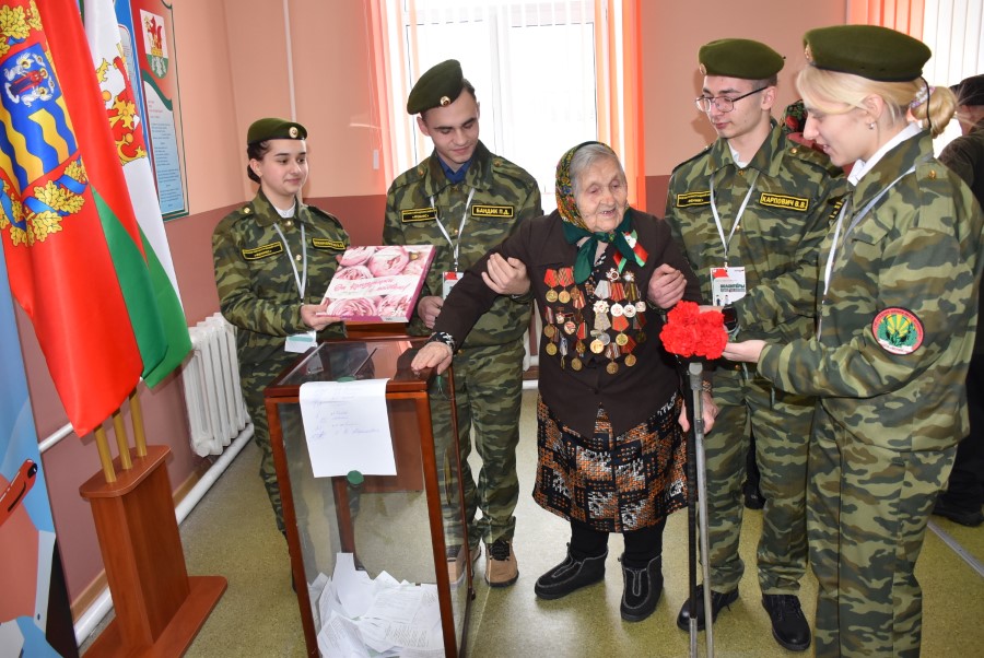 В сопровождении юных волонтеров – членов военно-патриотического клуба «Феникс» она была доставлена непосредственно к месту голосования. Не захотела женщина дожидаться основного дня голосования и решила свое волеизъявление высказать досрочно. Не изменила она и своей привычке лично приходить на участок, не стала вызывать членов комиссии для того, чтобы ее при исполнении такой важной миссии обслуживали на дому. Такой уж она человек. После того, как София Петровна опустила бюллетени в урну для досрочного голосования, она рассказала о своем решении и поведала свою биографию.