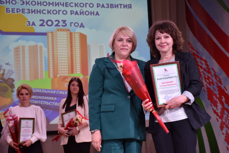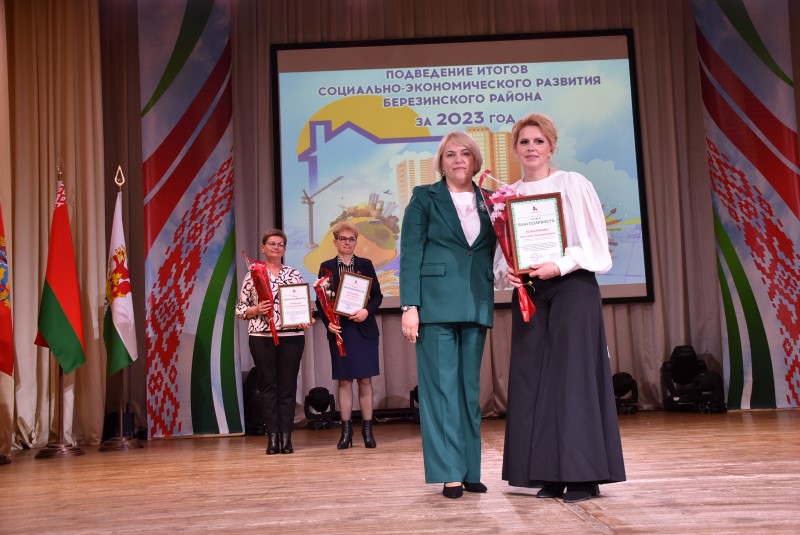 Кроме того Евгений Булойчик за значительный личный вклад в социально-экономическое развитие Минской области вручил благодарность председателя облисполкома мастеру производства продуктов из мяса отдела по заготовкам сельхозпродуктов и сырья Березинского филиала Минского областного потребительского общества Инне Бурой, педагогу дополнительного образования ГУО «Интеллектуальный центр дополнительного образования детей и молодежи» Игорю Чернушевичу. Также грамотой Министерства образования награжден учитель трудового обучения и черчения ГУО «СШ №2 г. Березино» Николай Дубовик, Почетной грамотой главного управления культуры Минского облисполкома отмечена руководитель народного семейного игрового-обрядового коллектива «Радзіна» Новинского сельского Дома культуры Нина Климович, заведующая методическим отделом государственного учреждения «Березинский районный центр культуры» Валентина Самец.