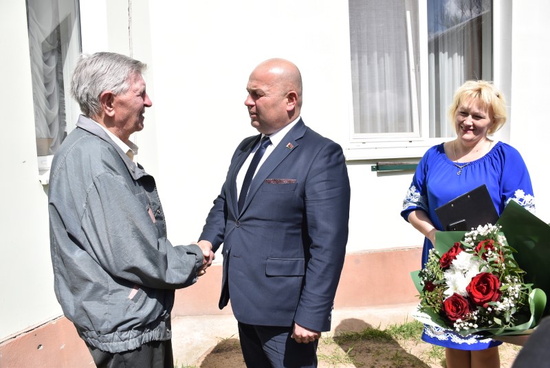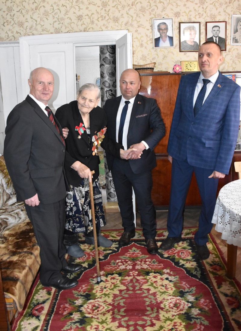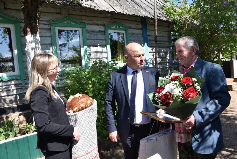 3 мая также встречали гостей – председателя районного исполнительного комитета Андрея Соколовского, председателя районного Совета депутатов Владимира Трухана, председателя районного совета ветеранов Анатолия Зябко, начальника управления по труду, занятости социальной защите райисполкома Веронику Джигеро, начальника отдела организационно-кадровой работы райисполкома Ольгу Мельничёнок, председателей Дмитровичского и Погостского сельских советов Виталия Сасковца, Наталью Дубовик – участник военных действий Анна Лаврентьевна Соболь, тыловик Зинаида Кирилловна Езепова, инвалиды от последствий военных лет Виктор Ильич Трус из деревни Высокая Гора и Роман Степанович Хващевский из деревни Слобода.