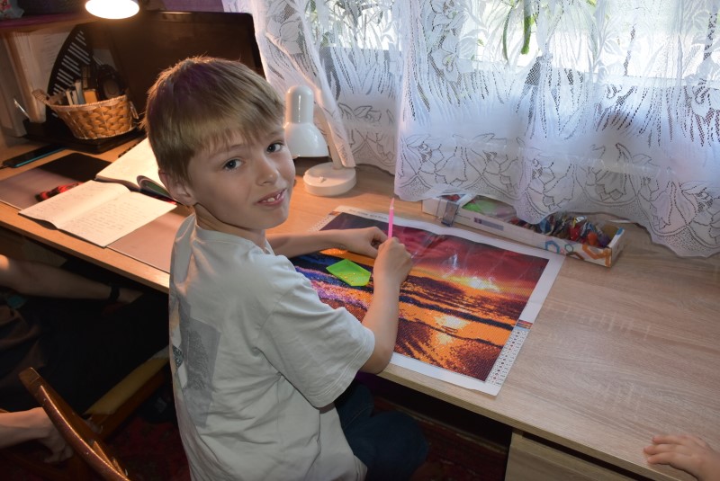 О новоселье мечтают и дети, а пока в тесноте да не в обиде и уроки делают в одной комнатке, и творчеством занимаются плечом к плечу. Особенно Назару очень нравится искусство алмазной мозаики. Его блестящие картины украшают стены детской комнатки и создают особенный уют, как и мамина выпечка, сделанная с любовью.