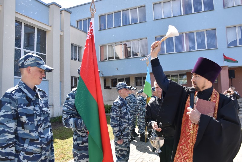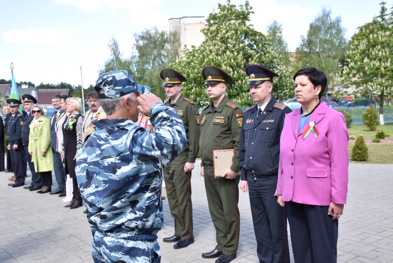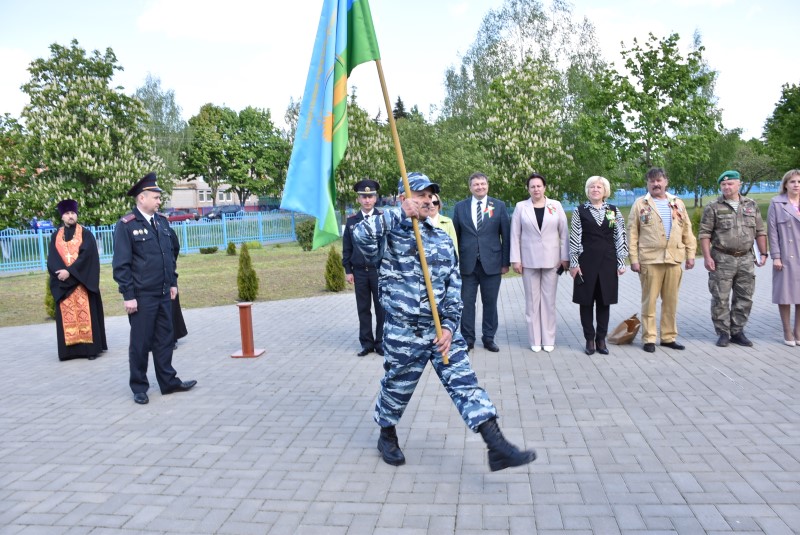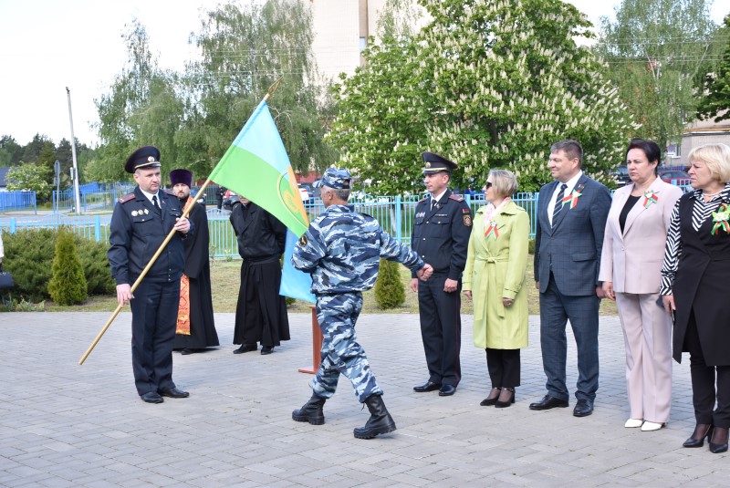 Важным и обязательным атрибутом созданного клуба является знамя. Его руководителю клуба, Василию Киселю, вручил временно исполняющий обязанности по должности начальника Березинского РОВД Александр Викторович.