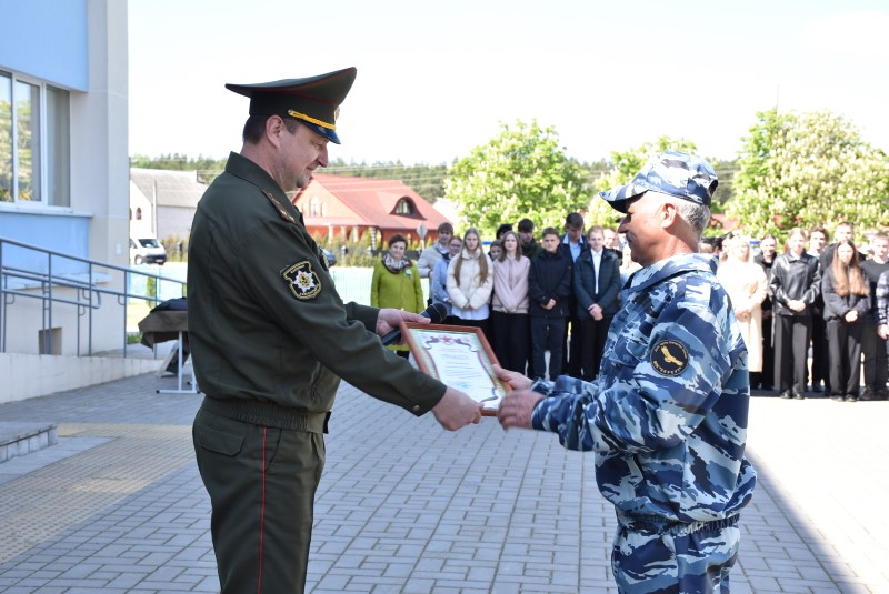 На мероприятии военный комиссар Червенского и Березинского районов Сергей Вербицкий вручил грамоты заместителю начальника Березинского РОВД Геннадию Рабизе, директору СШ №3 Алле Дудко и руководителю военно-патриотического клуба «Беркут» Василию Киселю за активное участие в создании этого клуба.