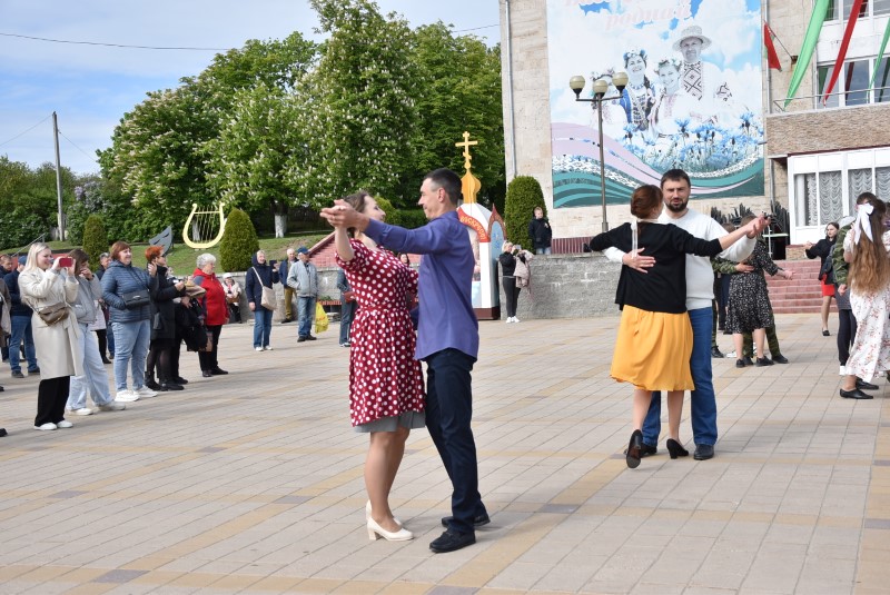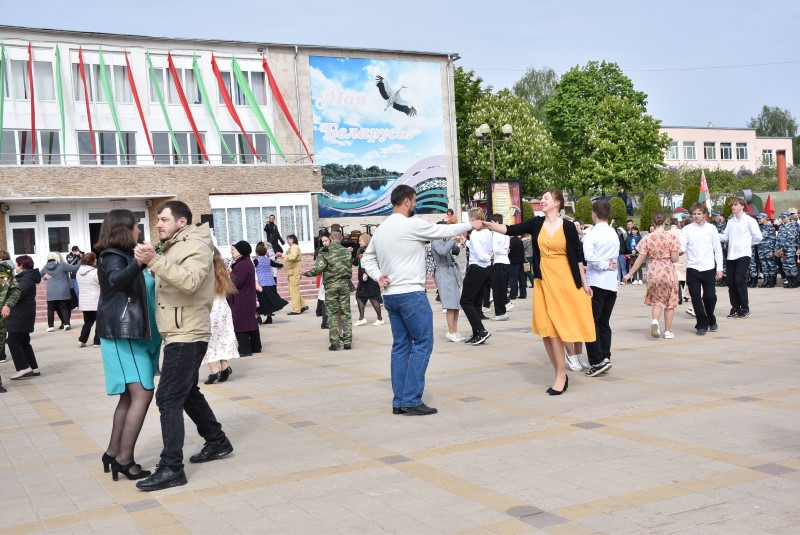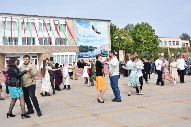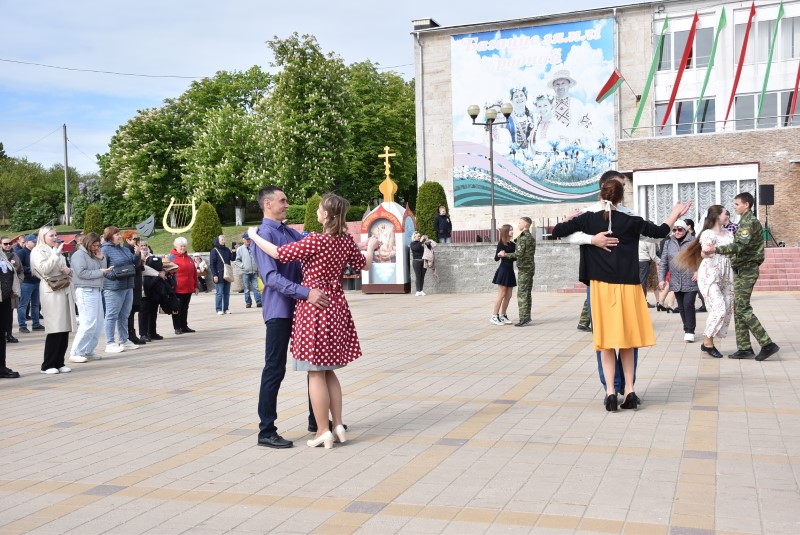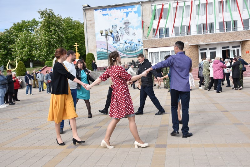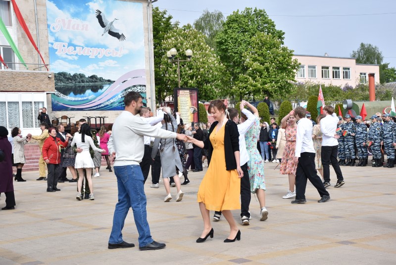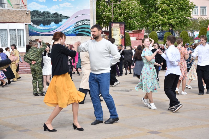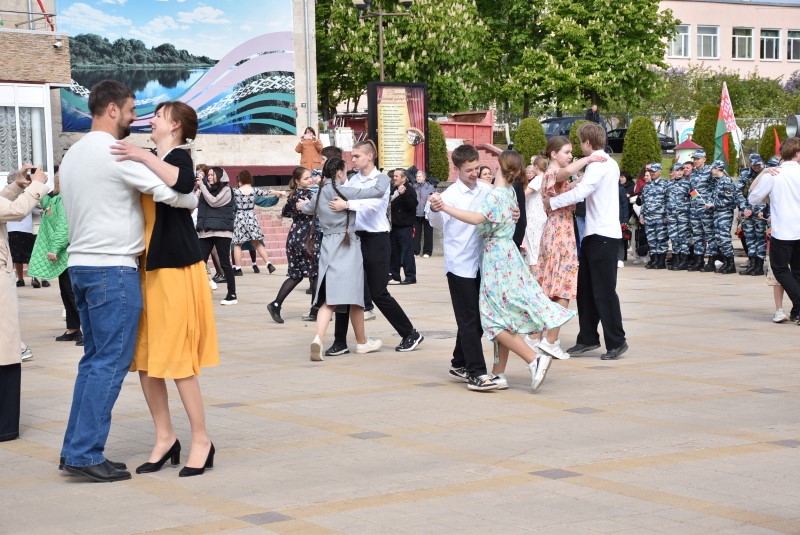 Именно с него, с Вальса Победы, и начались сегодня, 9 мая 2014 года, спустя 79 лет, гулянья в городе Березино, посвященные этой замечательной дате. «Помнит Вена, помнят Альпы и Дунай тот цветущий и поющий яркий май…» - звучат слова этого замечательного вальса и на центральной площади города 80 пар кружатся в вихре танца. И это не просто вальс, это наша связующая нить с поколением 45-го, это наша дань памяти тем, кто принес нам Победу, это день сегодняшний с его свершениями и успехами, устремлениями и мирной жизнью.