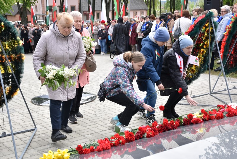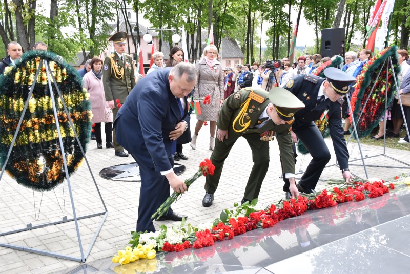 Открывая митинг, председатель районного исполнительного комитета Андрей Соколовский отметил, что победа в Великой Отечественной войне – не просто грандиозное событие. Это пример сплоченности, дружбы и братства людей разных национальностей, которые от мала до велика встали на борьбу с фашизмом, чтобы защитить свою Родину, дать отпор агрессору и восстановить мир на земле. Большими жертвами была выстлана дорога к Победе. Немало потерь понес за годы оккупации и наш Березинский район. Но мы выстояли, проявляя героизм и подвиги, вынося все невзгоды и трудности. И сегодня, с памятью о своем героическом прошлом мы живем под мирным небом в независимой стране и свято храним, передавая из поколения в поколение, подвиг своего народа, празднуя ежегодно 9 мая День Великой Победы как самую значимую дату в истории нашей страны.