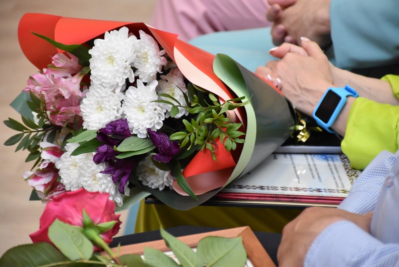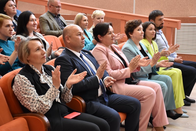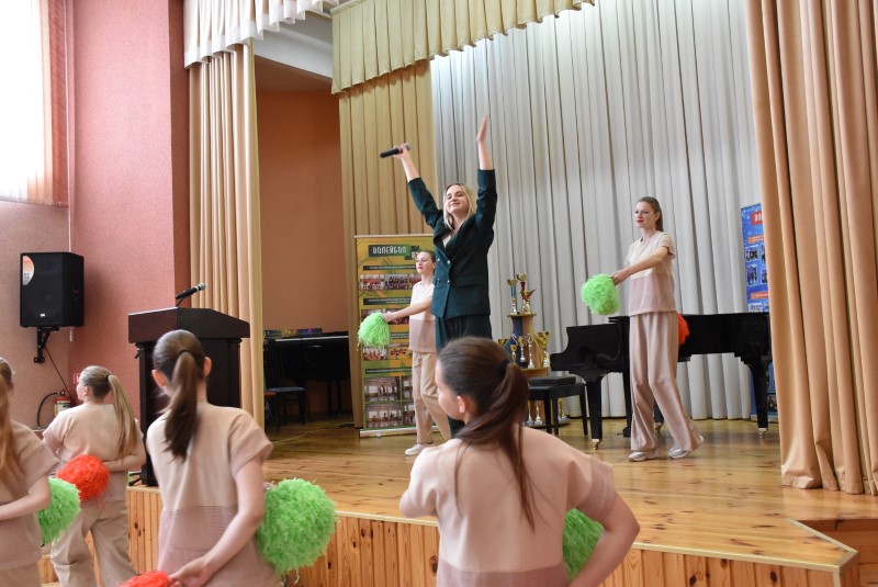 Алеся Алексеевна также сообщила приятную новость: сегодня буквально за полчаса до начала мероприятия пришло известие, наша команда учеников-волейболисток во главе с тренером Николаем Михалёвым завоевала первое место на соревнованиях в области, что внесло в атмосферу праздника особую нотку. Алеся Титова также поздравила всех с праздником и пожелала здоровья и мирного неба.