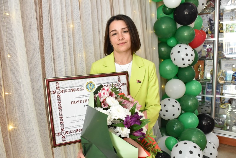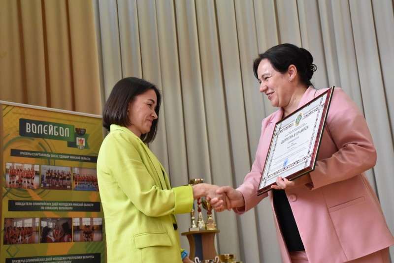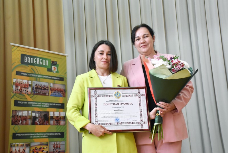 Начальник управления по образованию, спорту и туризму Березинского райисполкома Алеся Титова вручила главному специалисту управления Ирине Зябко Почетную грамоту главного управления спорта и туризма Минского облисполкома – за высокое профессиональное мастерство, популяризацию здорового образа жизни и значительный личный вклад в развитие физической культуры и спорта Минской области.