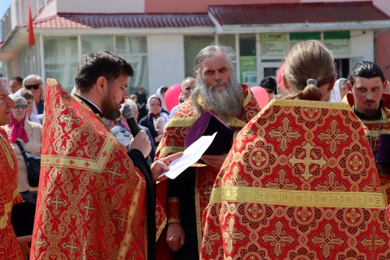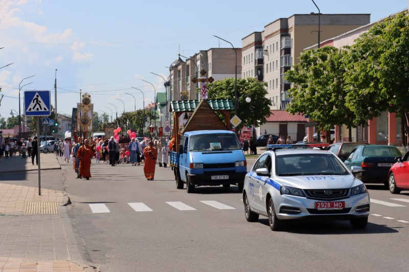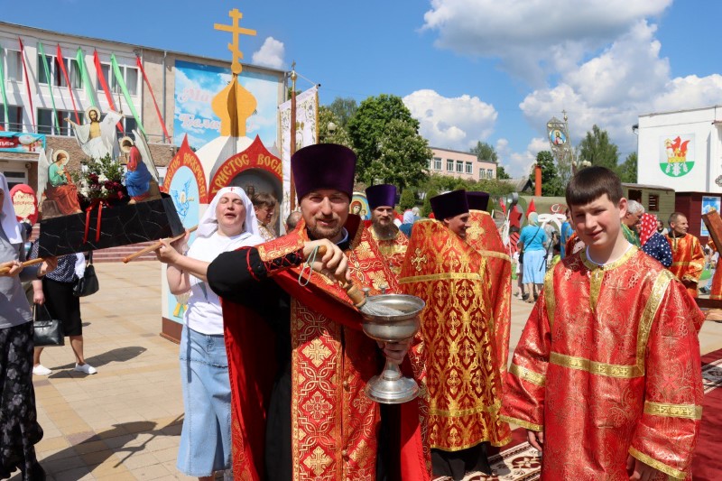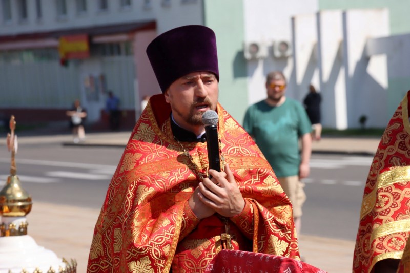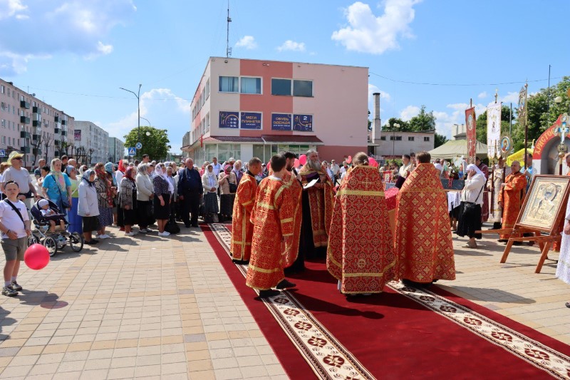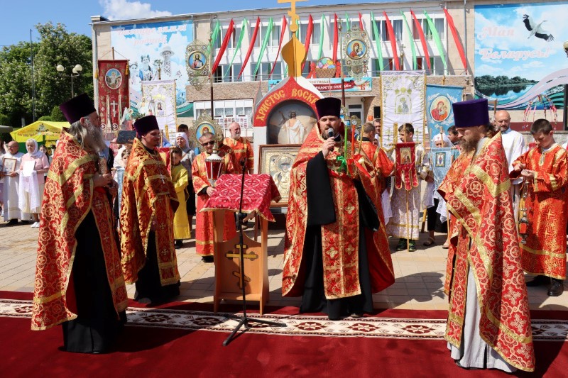 На городской площади состоялся молебен. Благочинный Березинского церковного округа протоиерей Илья Гончарук поздравил верующих с Пасхой Христовой.