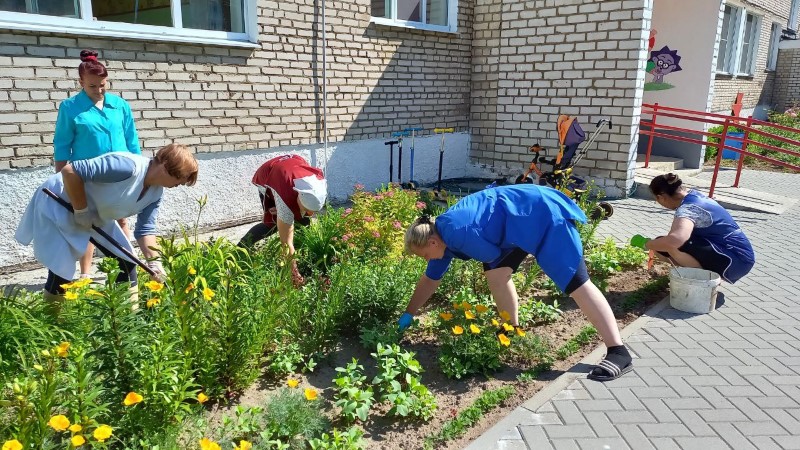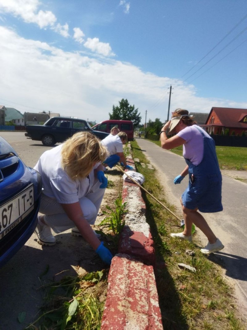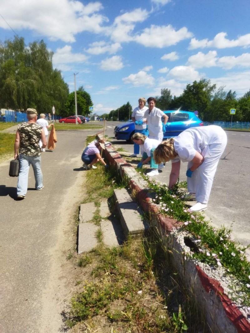 Работники Березинской ЦРБ наводят порядок на прилегающей территории