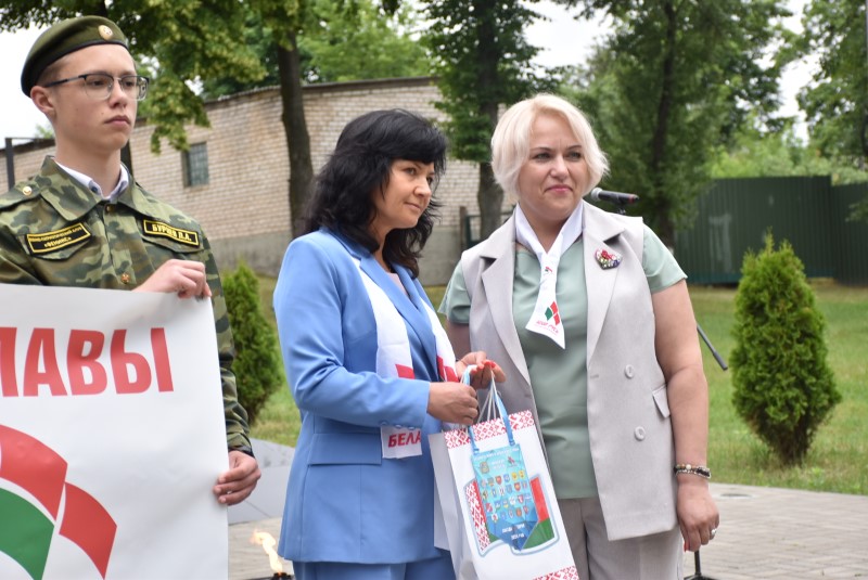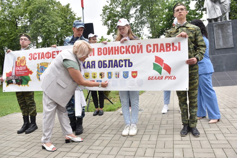 В рамках акции «Эстафета мира и воинской славы» был учрежден специальный переходящий вымпел, который в торжественной обстановке передается из одного района в другой. Березинцы приняли его от представителей Крупского района.