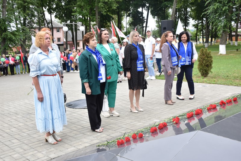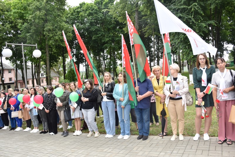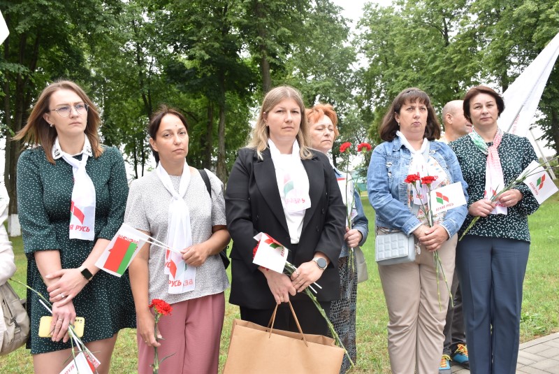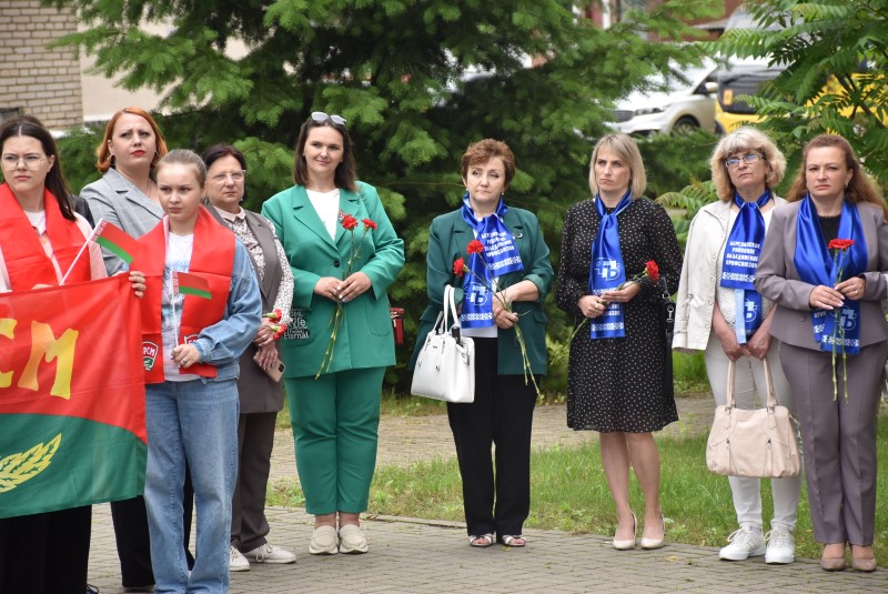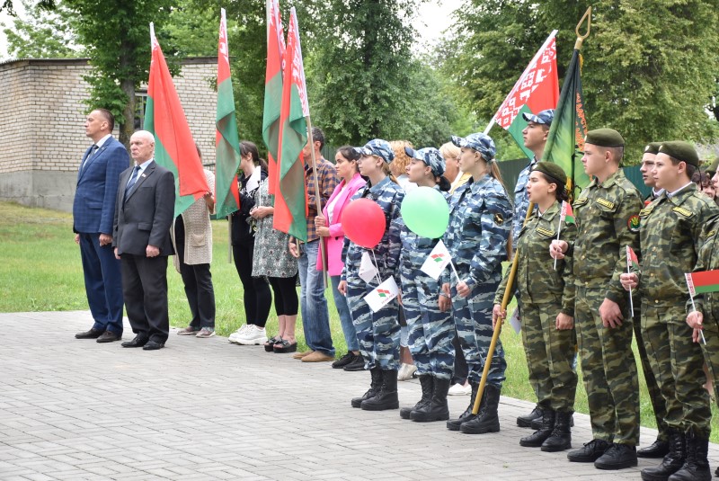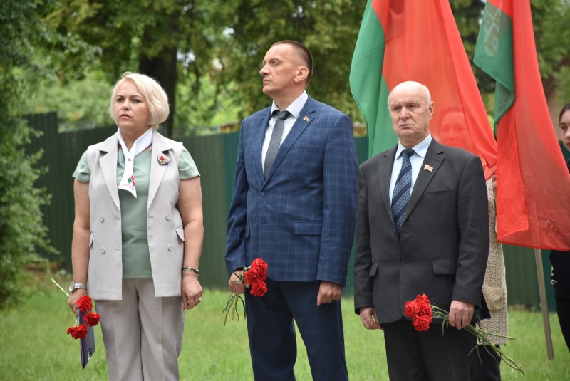 На торжественном мероприятии присутствовали председатель районного Совета депутатов Владимир Трухан, председатель Березинского районного совета ветеранов Анатолий Зябко, председатель Березинской районной организации «Белая Русь» Елена Кушнер, делегация из Крупского района во главе с председателем районной организации «Белая Русь» Людмилой Куксиной, представители общественных объединений, молодежь, школьники.