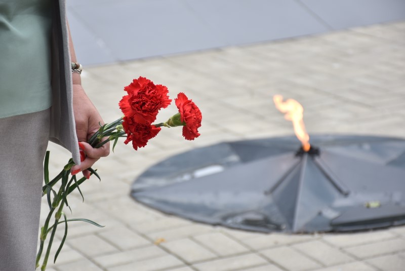 Минута молчания. Мы помним. К подножию памятника ложатся цветы…