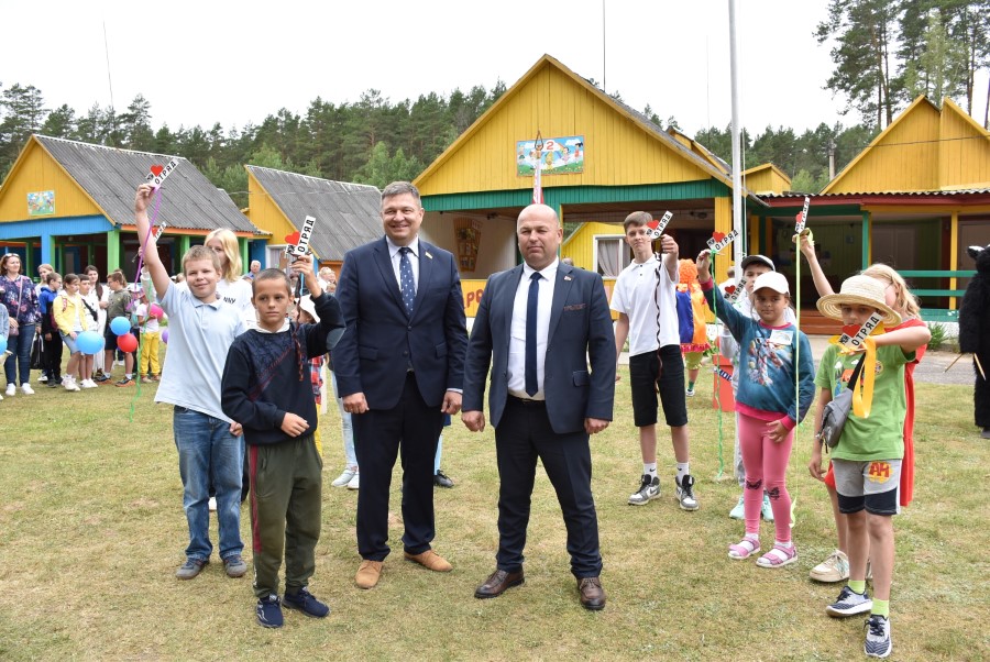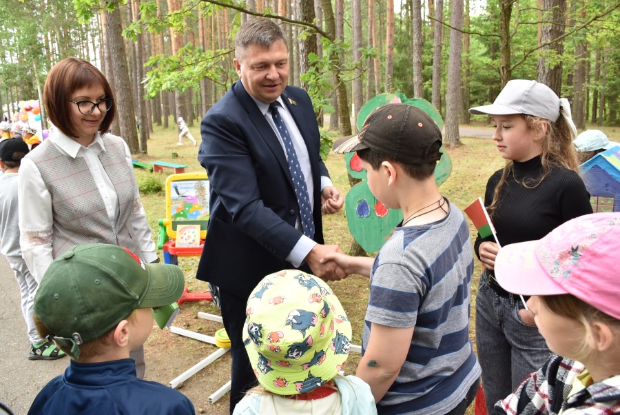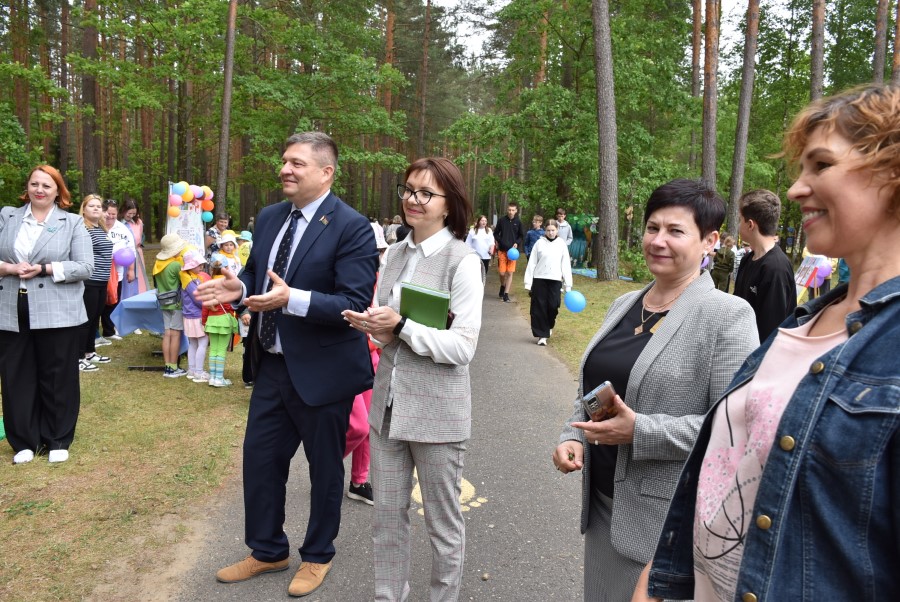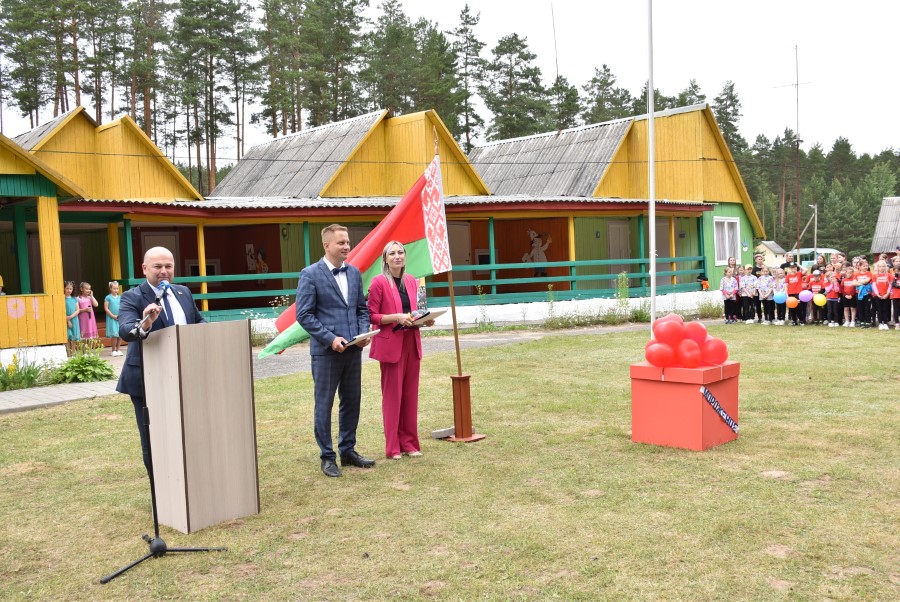 К собравшимся с приветственным словом обратился председатель районного исполнительного комитета Андрей Соколовский. Он не только заострил внимание на том, что лагерь сегодня, благодаря усилиям многих взрослых, стал ярче, красивее и комфортнее, не только пожелал весело и активно провести первой и последующим сменам свои каникулы.