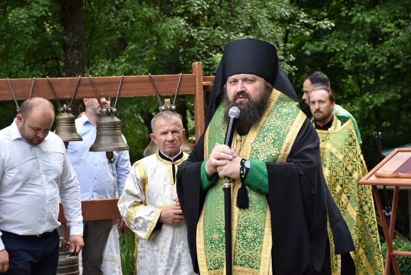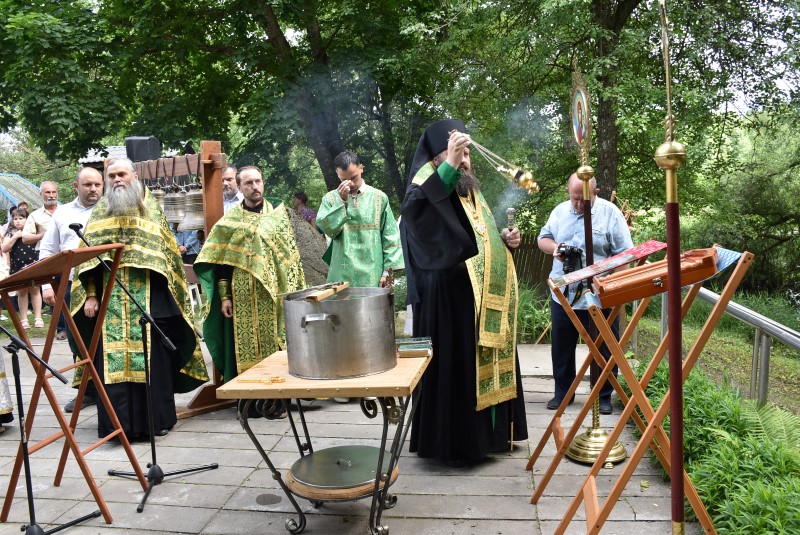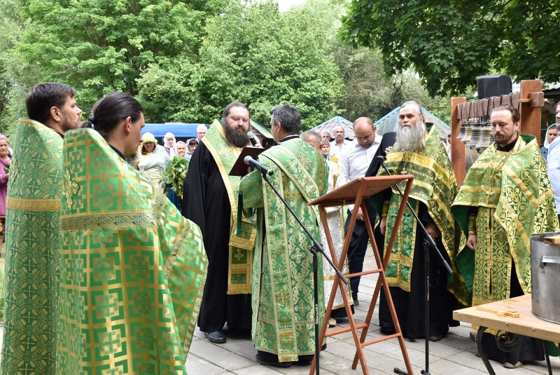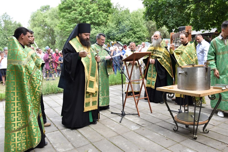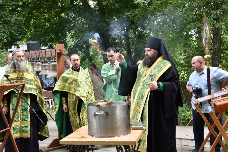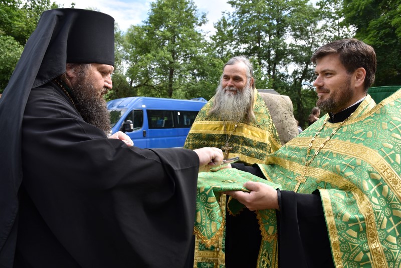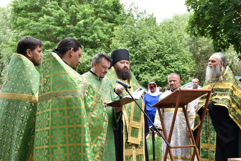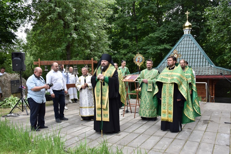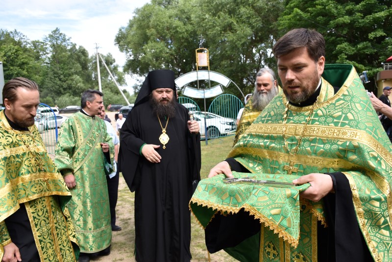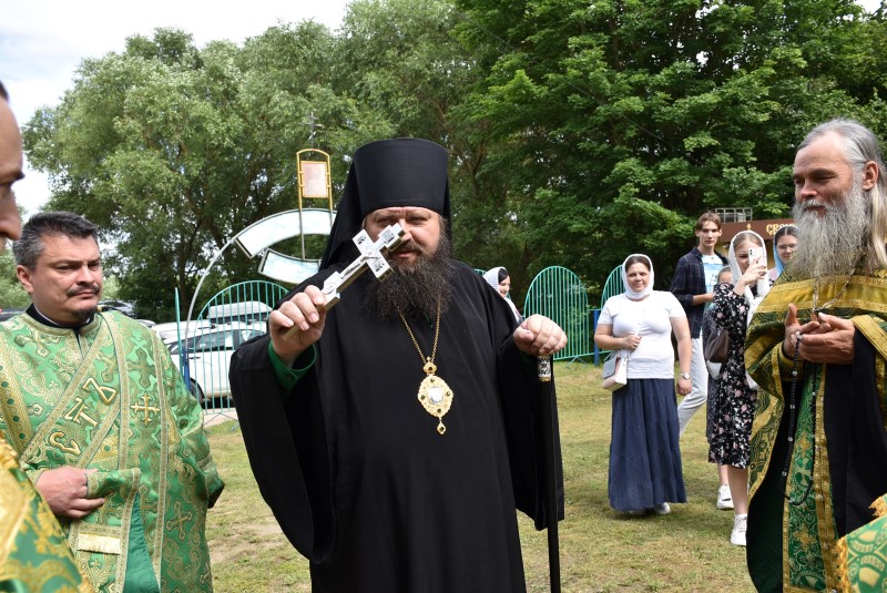 После молебна с водоосвящением Преосвященнейший Амвросий поздравил собравшихся с великим праздником, отмечаемым сегодня всеми христианами – Днём Святой Тройцы и обратился с проповедью.