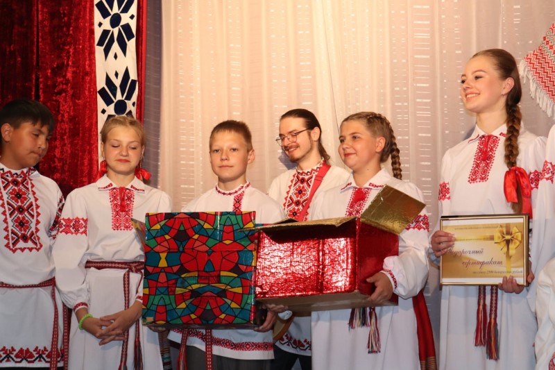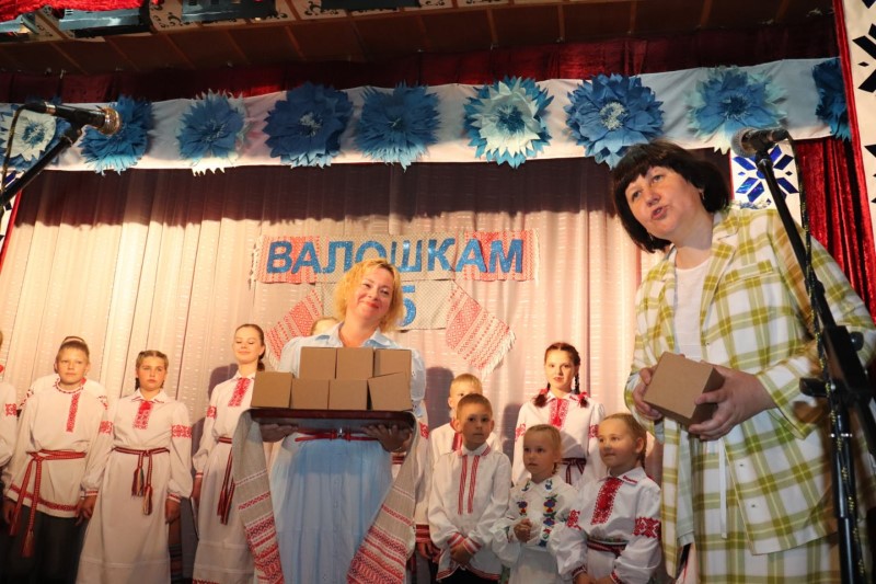 Во-первых, это благодарность председателя райисполкома руководителю коллектива Светлане Климович, во-вторых – сертификат коллективу на 2500 рублей. В-третьих, это сверх того и 150 тысяч рублей, которые райисполком выделяет в этом году на ремонт здания Дома культуры. А еще всем участникам ансамбля были вручены два картонных ящика: один – с мороженым, другой – с шоколадом!