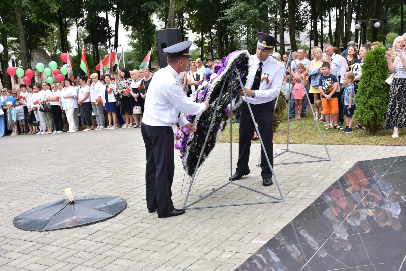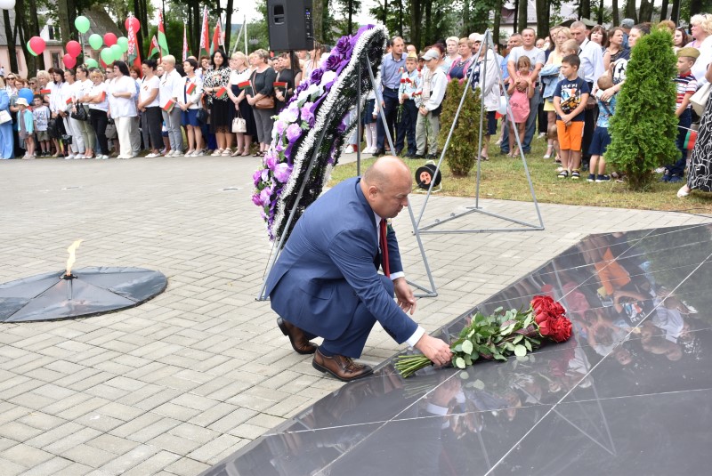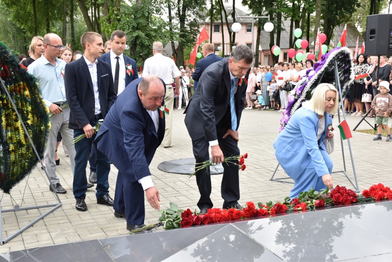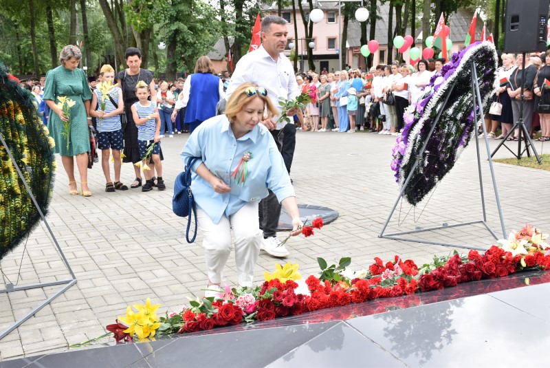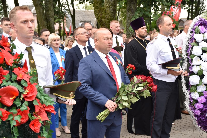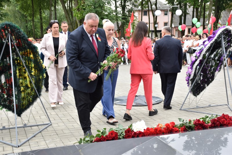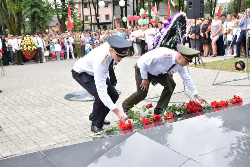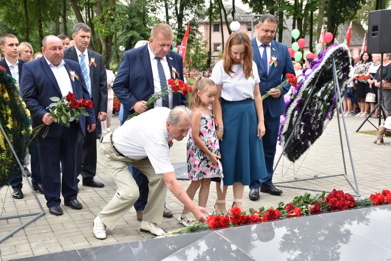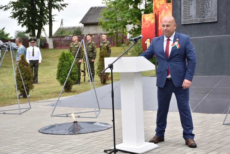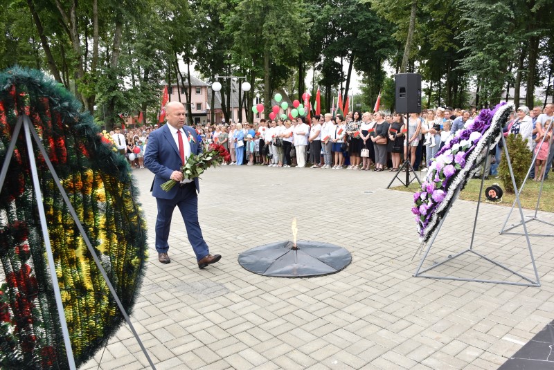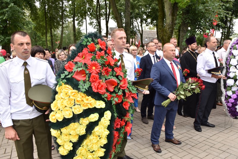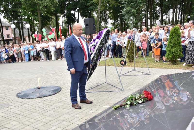 – Уважаемые гости и жители Березинского района! Поздравляю вас с днём Независимости Республики Беларусь и восьмидесятой годовщиной освобождения нашей страны от немецко-фашистских захватчиков. День Независимости - это символ несгибаемой силы воли и духа непокорённого народа, наше национальное достояние, завоёванное жизнью каждого третьего белоруса. Большой ценой оплаченны свобода и независимость Беларуси. Поколение, которое подарило нам Великую Победу, свободу и мир ценой своих жизней, миллионов жизней. Мы будем говорить и помнить об этом всегда и передавать это знание новому рождённому на нашей земле поколению. Потому что 3 июля, в День освобождения от немецко-фашистских оккупантов, белорусы вернулись к жизни. Нет и не может быть иного смысла у этого праздника, нет и не может быть другой даты. Дорогие ветераны войны и труда, мы все, кто родился в годы войны и после, в неоплатном долгу перед вами. Нам повезло быть детьми и внуками таких мужественных и волевых людей, как вы, настоящих патриотов. Нам повезло расти и воспитываться на примере военных и трудовых подвигов вашего героического поколения. Поколение, которое научило нас держать удар жить по совести и по справедливости, дай Бог вам здоровья и бодрости, дай Бог нам как можно дольше иметь возможность говорить вам слова благодарности, поздравлять вас с этим великим праздником, который вы нам подарили. Вы бились на полях военных сражений, ваша победа на многие десятилетия вперёд обеспечила мир.