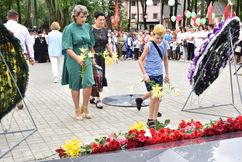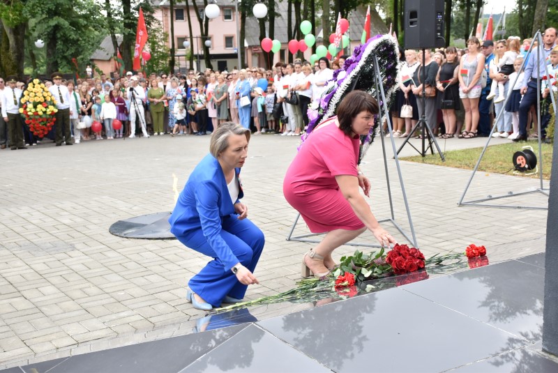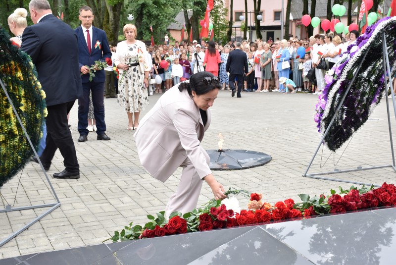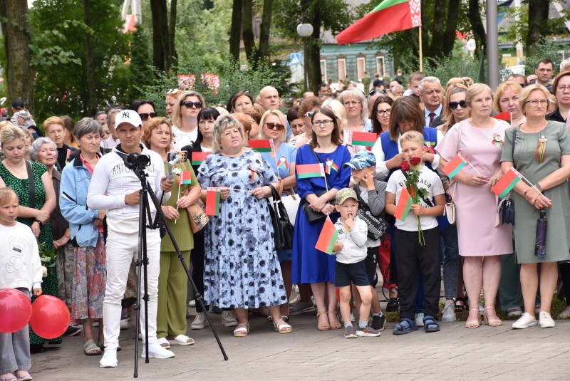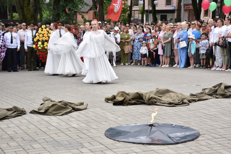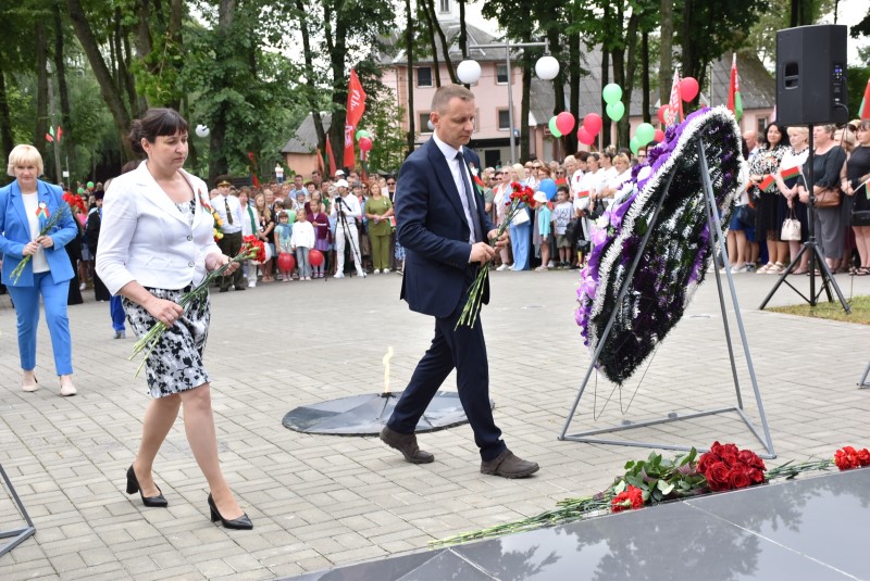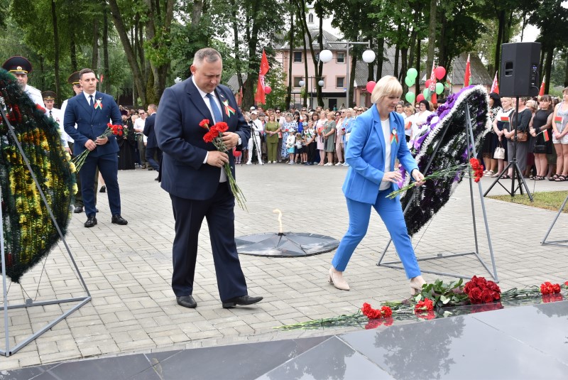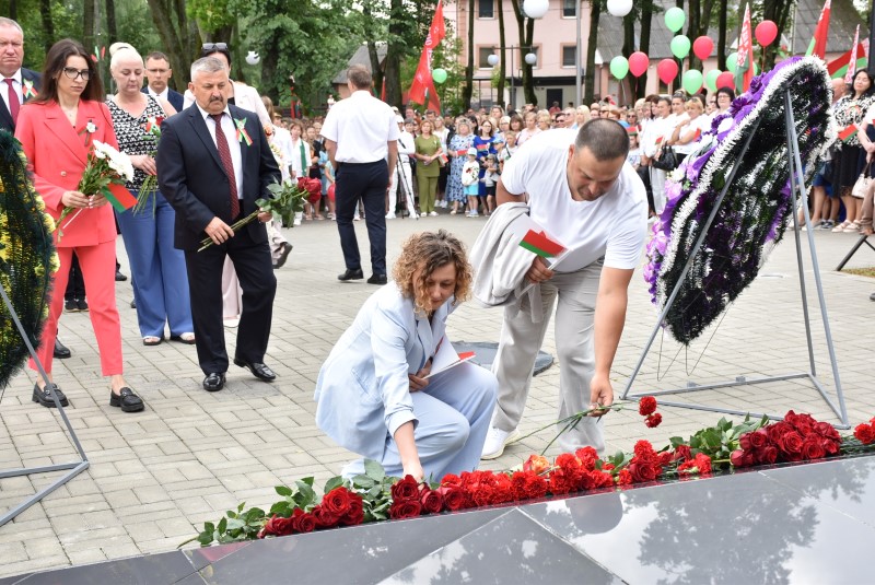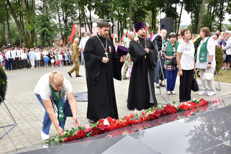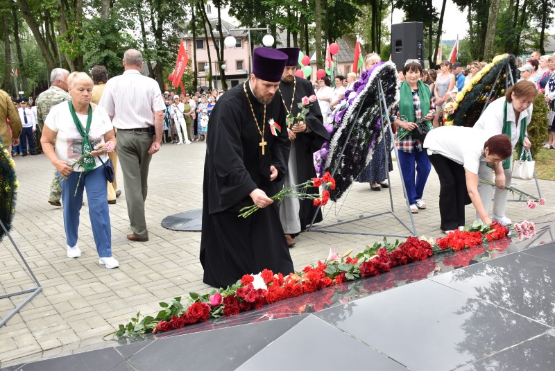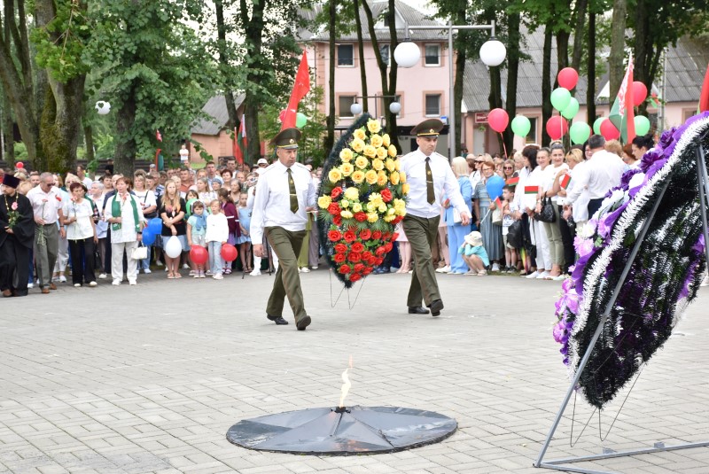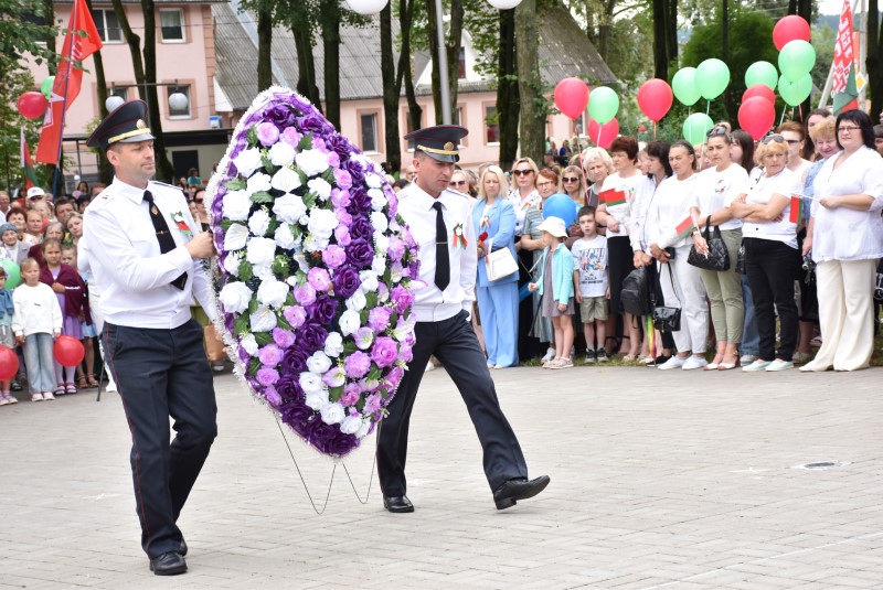 – Уважаемые гости и жители Березинского района! Поздравляю вас с днём Независимости Республики Беларусь и восьмидесятой годовщиной освобождения нашей страны от немецко-фашистских захватчиков. День Независимости - это символ несгибаемой силы воли и духа непокорённого народа, наше национальное достояние, завоёванное жизнью каждого третьего белоруса. Большой ценой оплаченны свобода и независимость Беларуси. Поколение, которое подарило нам Великую Победу, свободу и мир ценой своих жизней, миллионов жизней. Мы будем говорить и помнить об этом всегда и передавать это знание новому рождённому на нашей земле поколению. Потому что 3 июля, в День освобождения от немецко-фашистских оккупантов, белорусы вернулись к жизни. Нет и не может быть иного смысла у этого праздника, нет и не может быть другой даты. Дорогие ветераны войны и труда, мы все, кто родился в годы войны и после, в неоплатном долгу перед вами. Нам повезло быть детьми и внуками таких мужественных и волевых людей, как вы, настоящих патриотов. Нам повезло расти и воспитываться на примере военных и трудовых подвигов вашего героического поколения. Поколение, которое научило нас держать удар жить по совести и по справедливости, дай Бог вам здоровья и бодрости, дай Бог нам как можно дольше иметь возможность говорить вам слова благодарности, поздравлять вас с этим великим праздником, который вы нам подарили. Вы бились на полях военных сражений, ваша победа на многие десятилетия вперёд обеспечила мир.