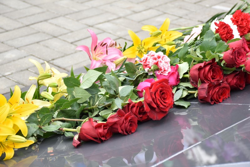 Минута молчания... К подножию памятника легли цветы...