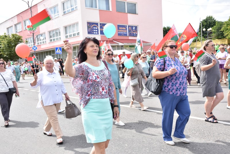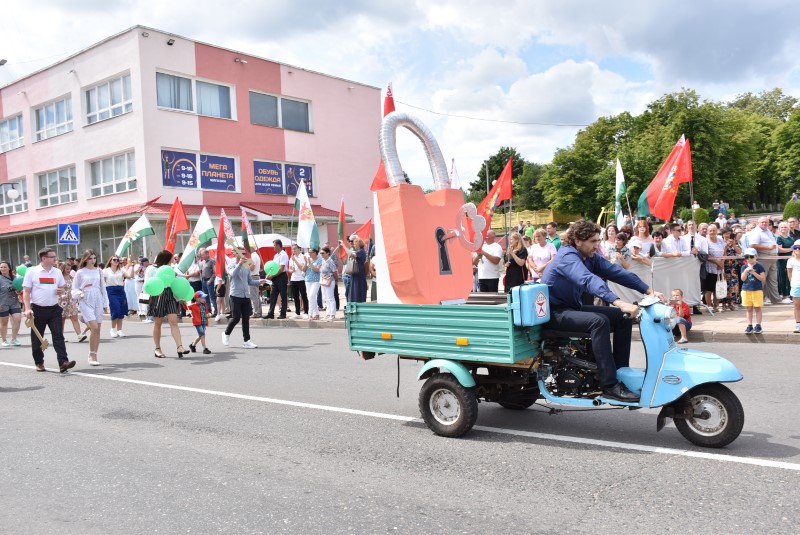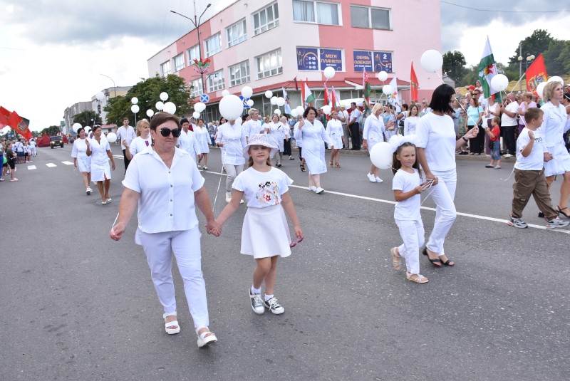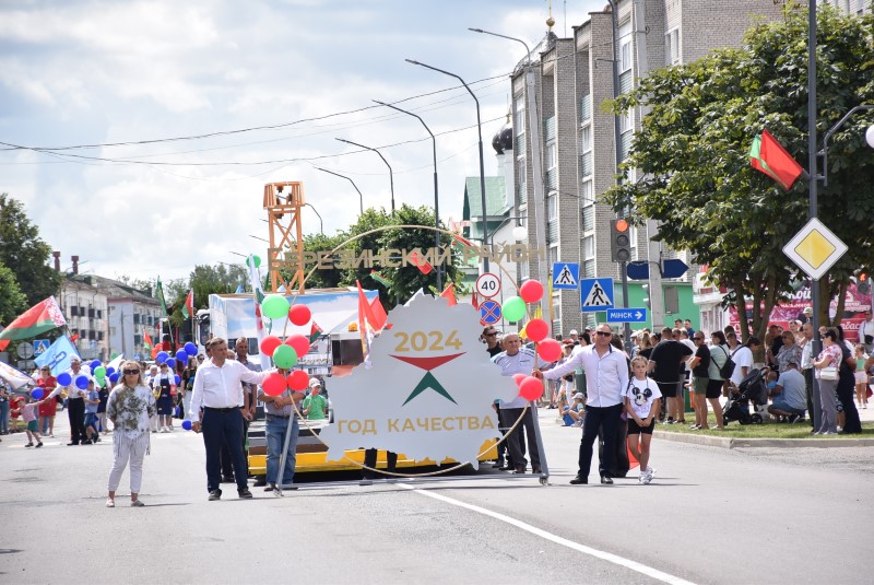 Год качества. Качества, на которое работает вся страна. Страна, в которой Березинский район занимает достойное место. И трудятся на это качество все наши производственные предприятия и цеха. Среди прошествовавших в колонне представителей были коллективы ДРСУ-192, ПМК-82, березинские сыроделы, представители коммунальной службы, лесного хозяйства.