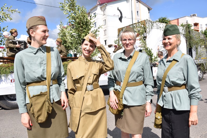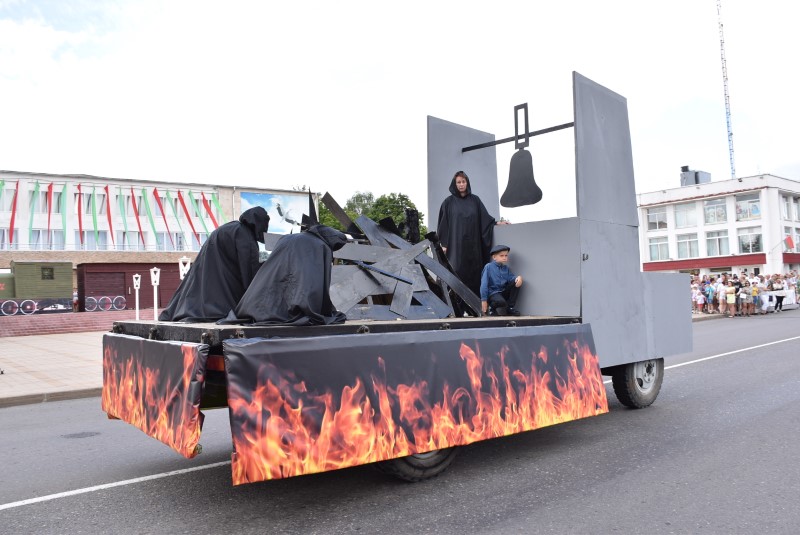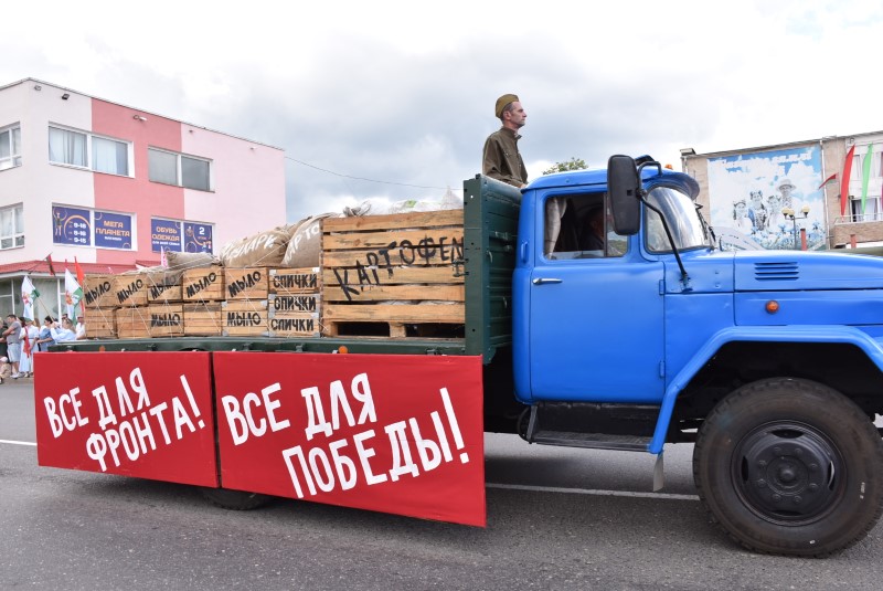 Дорого далась нам оккупация. Уже в начале 1942 года было совершено массовое убийство еврейского населения. Было убито более 900 человек. В июне 1942 года, проведена первая карательная операция «Майский жук», в ходе которой, с частью населения были уничтожены деревни Утешино, Клещицы и Товстица. В ходе других, неоднократных карательных операций на территории Березинщины были сожжены деревни Осово, Демешковка, Котово, Старая Князевка. Осенью 1942 почти со всем населением были сожжены деревни Красное и Боровино. Уцелели единицы. Но народные мстители не оставляли гитлеровцев без отмщения. Принимая активное участие в «рельсовой войне», партизаны Березинщины пустили под откос не один немецкий эшелон. А в ходе операции Багратион, громили отступавших врагов. После прихода Советской армии, многие продолжили боевой путь уже в составе кадровых частей, освобождали Восточную и Центральную Европу, и завершили боевой путь в логове нацистского зверя – в Берлине, где 30 апреля 1945 года, в 21 час 50 минут над поверженным Рейхстагом было водружено Знамя Победы. И сегодня, на нашем празднике вы видите копию Знамени Победы!