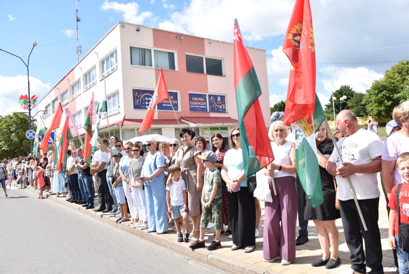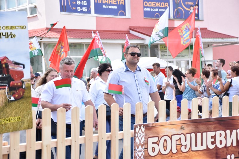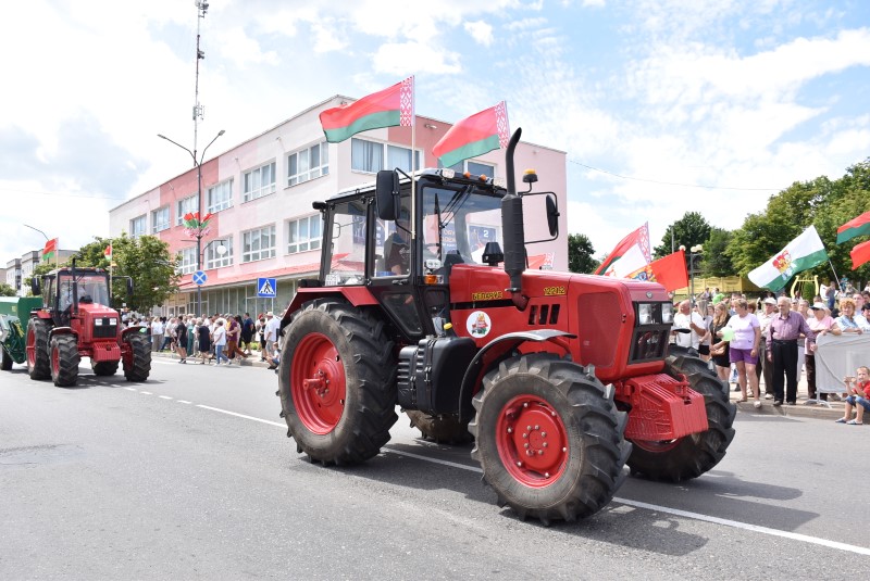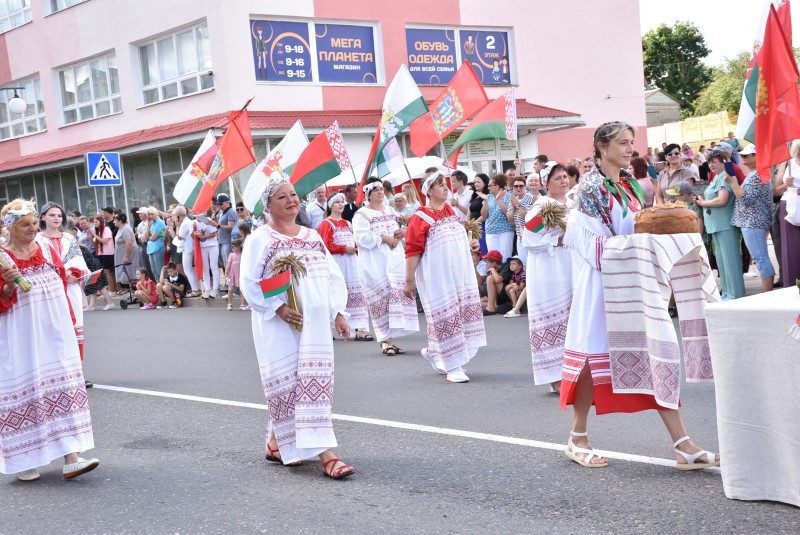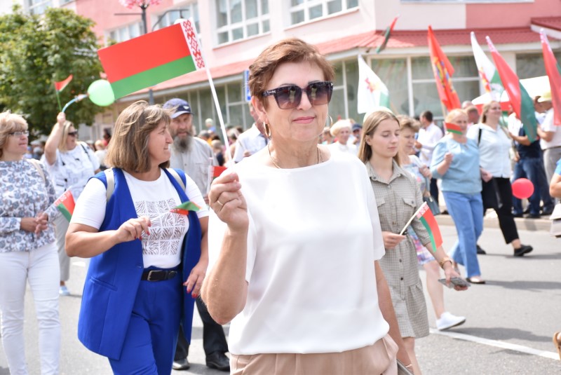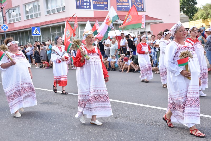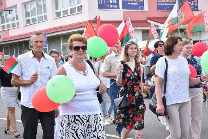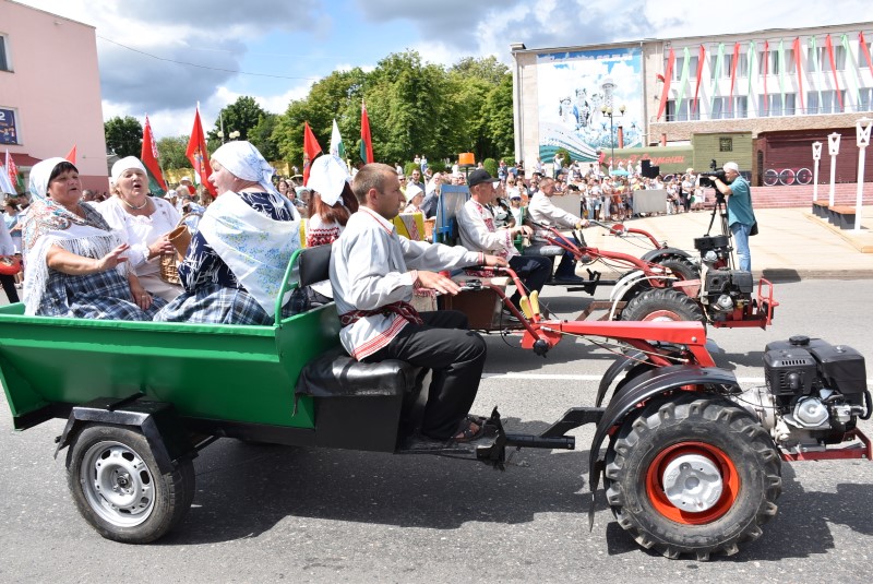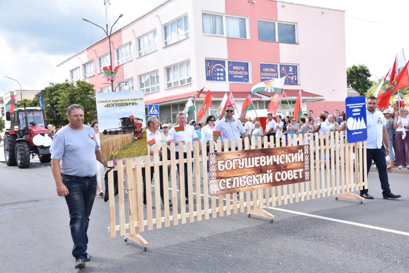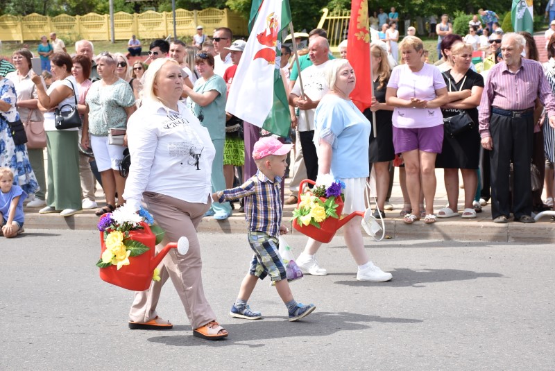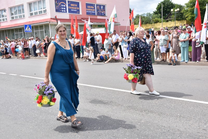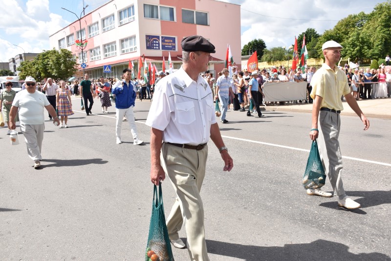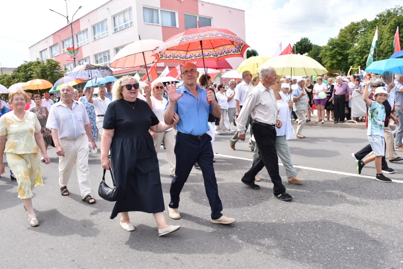 В праздничной колонне идут депутаты сельских исполнительных комитетов, руководители сельскохозяйственных организаций и их коллективы