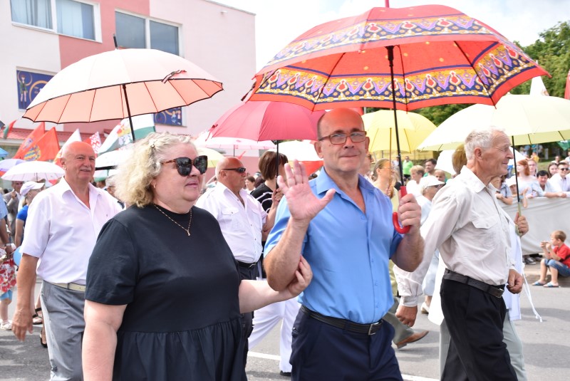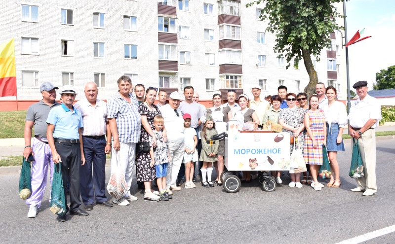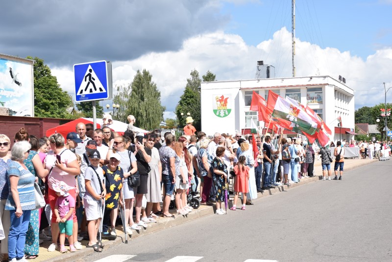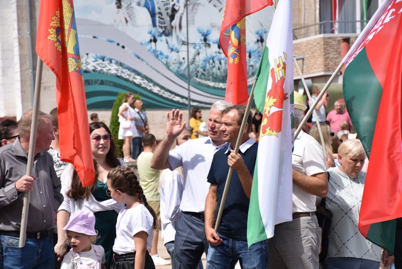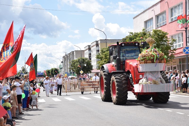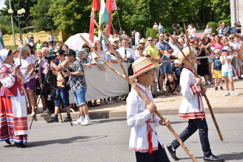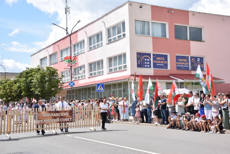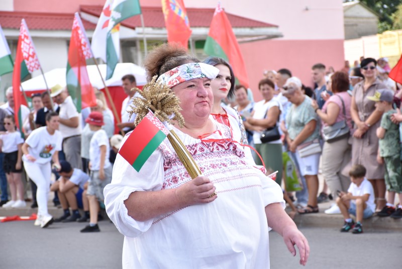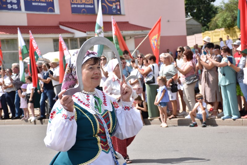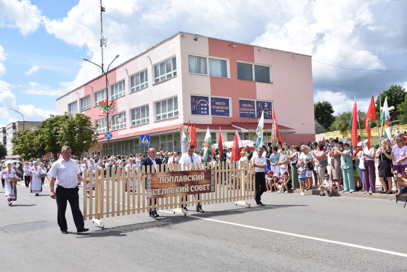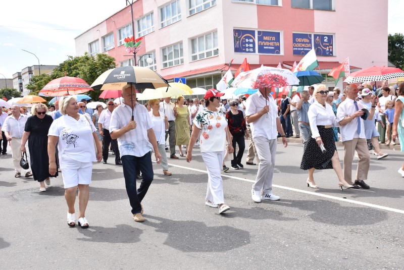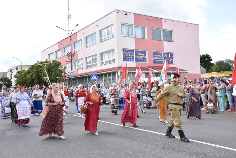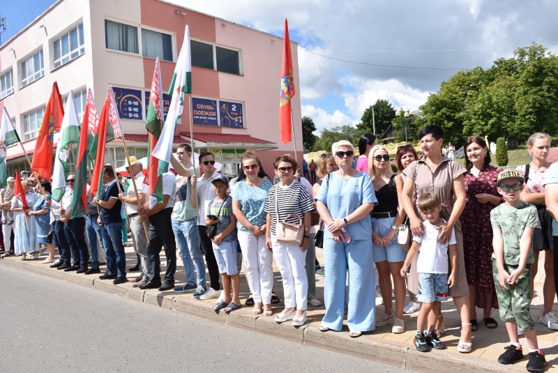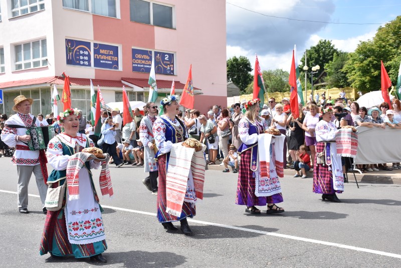 В праздничной колонне идут депутаты сельских исполнительных комитетов, руководители сельскохозяйственных организаций и их коллективы