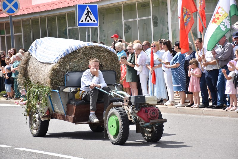 И это только часть нашей мощи, потому что остальные автомобили, трактора и комбайны, несмотря на праздник, продолжают творить добро, созидать район и помогать людям в их мирном труде.