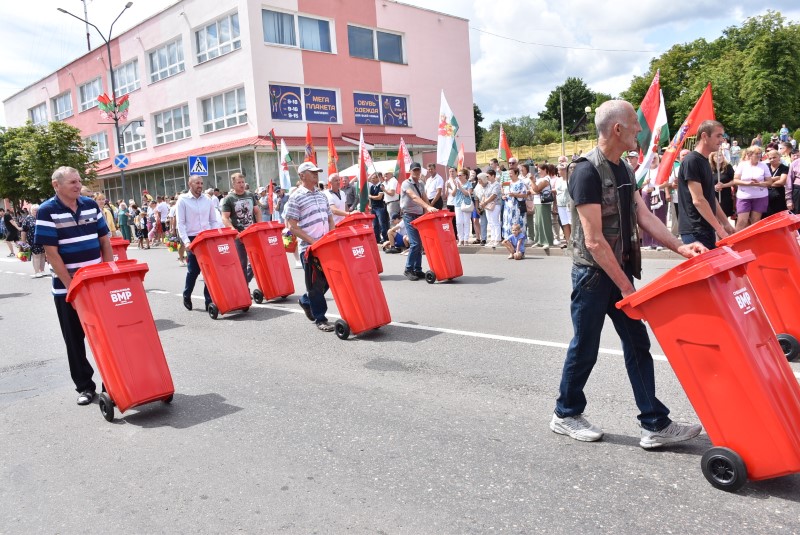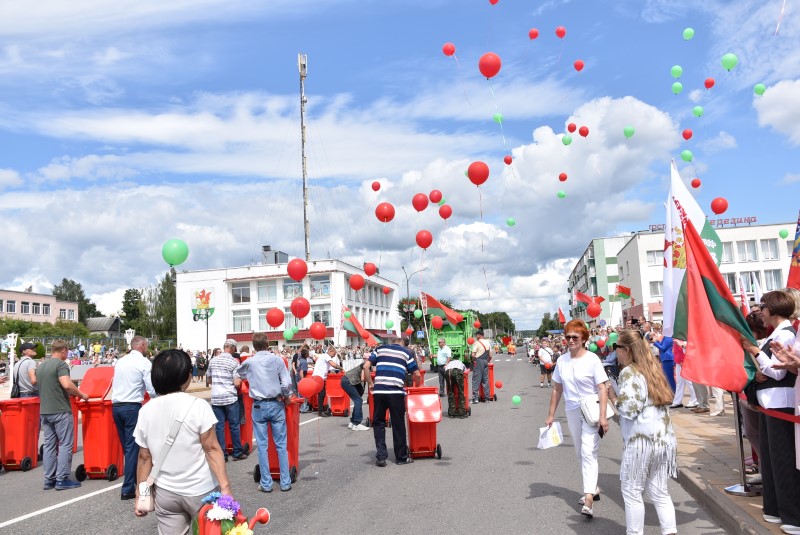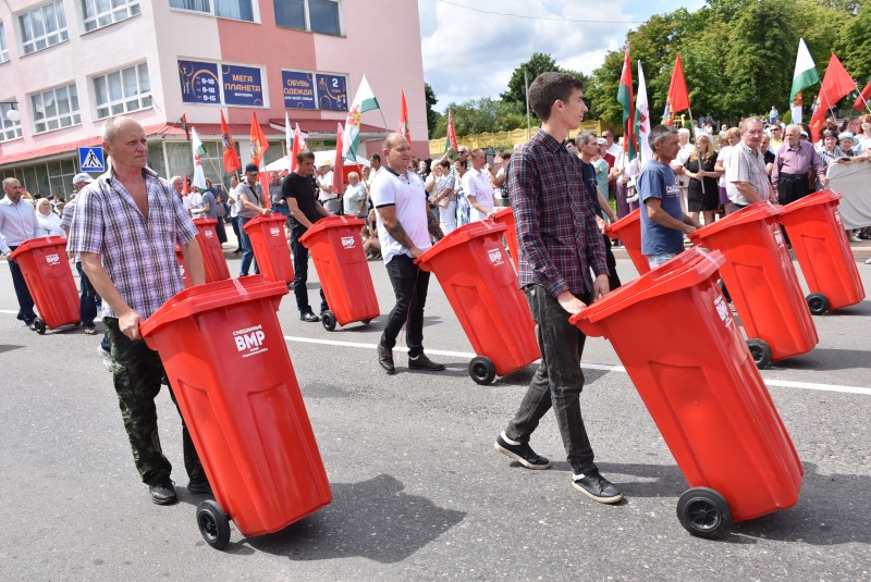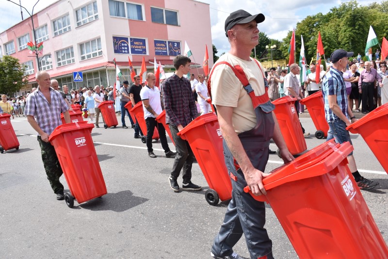 Качество – это новые стандарты обслуживания. Это отношение к общественному как к своему. Это креативный взгляд на труд, и новые подходы к благоустройству. Это доброжелательность и отзывчивость сотрудников. Это новая техника на улицах и порядок во дворах. Это просто любовь к своей работе и к городу, в котором мы живём. Креативным моментом шествия РКУПП «Березинское ЖКХ» стал момент, когда из обычных передвижных бачков для сбора мусора разом вырвались наружу… многочисленные воздушные шарики.