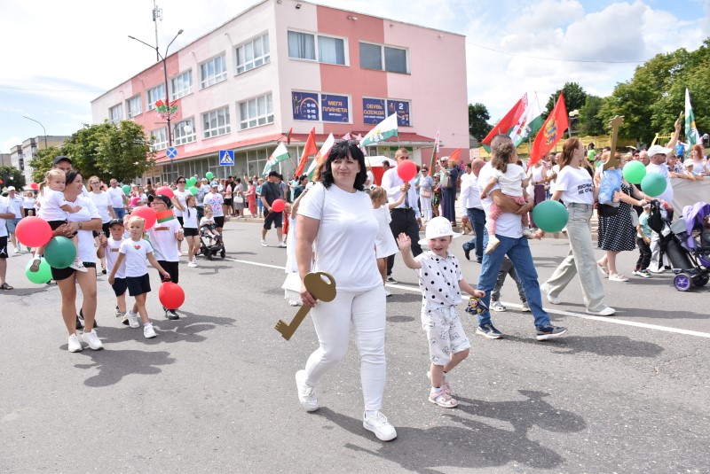 И вот поезд приближается к последней стании – «Станции будущего». Кто оно – наше завтрашнее, наша будущее? А вот оно шагает в колонне юных жителей Березинщины, в колонне школьников и членов патриотических клубов. Наше будущее – и сегодняшние молодожены, и представители многодетных семей. Это все они, надежда страны и края, которым строить и развивать родной город и свой район. Город, котором хочется жить. Район, который, благодаря им, станет жемчужиной в ожерелье районов Минской области!