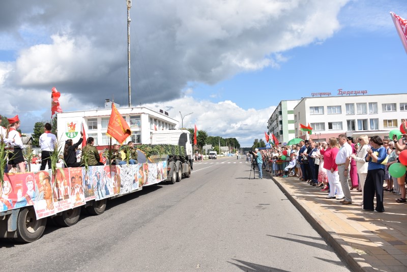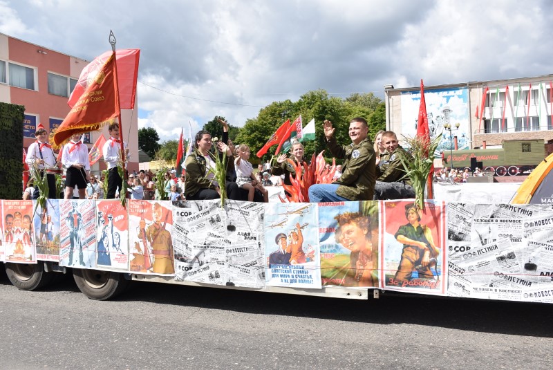 Воистину, это была страна героев. Наша страна. В этом году исполняется 100 лет, как на Березинщине появился первый пионерский отряд. Пионеры и комсомольцы Березинщины принимали самое активное участие в развитии города, района, страны. Именно они, ровесники района, и были во главе отправившегося Поезда времени. За ним следовали и другие «вагоны», в которых чего только мы не увидели, какие только ностальгические воспоминания не родились у нас, особенно людей среднего и более старого поколения. Вспомним те события и мы вместе с ведущим праздника Алексеем Бабашевым.