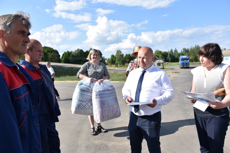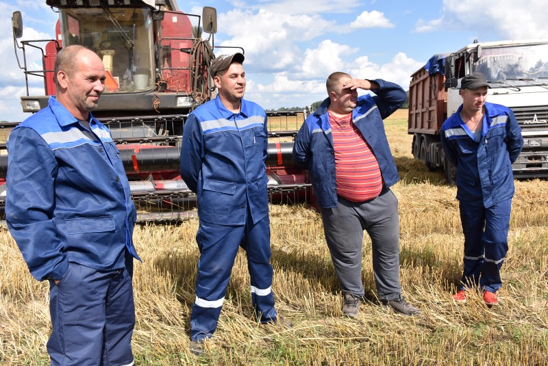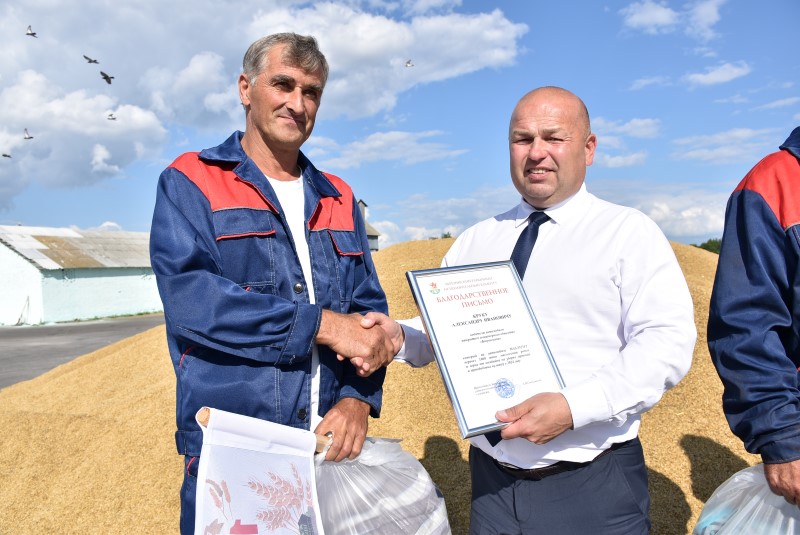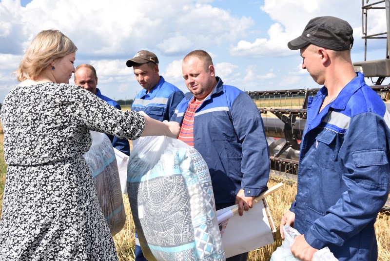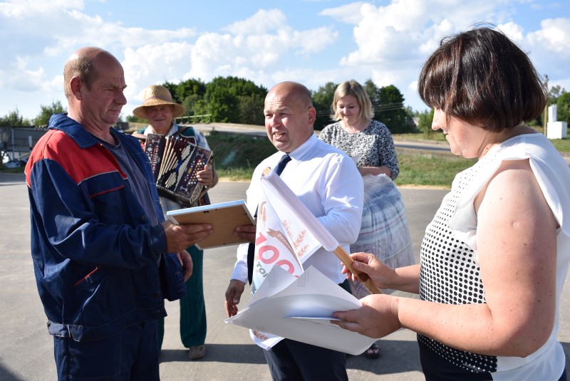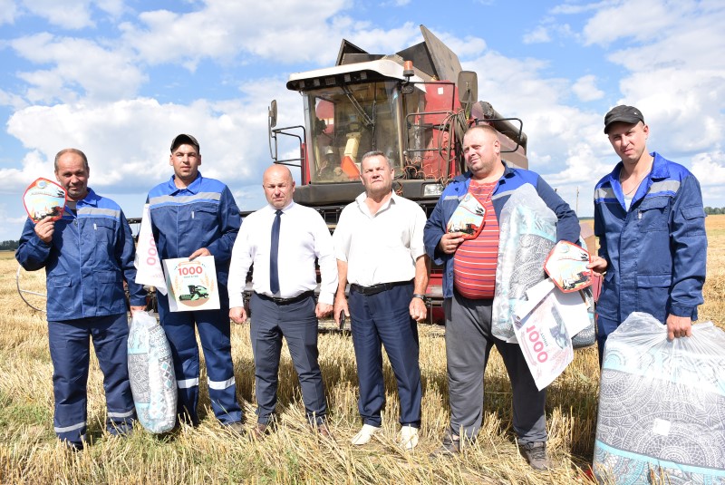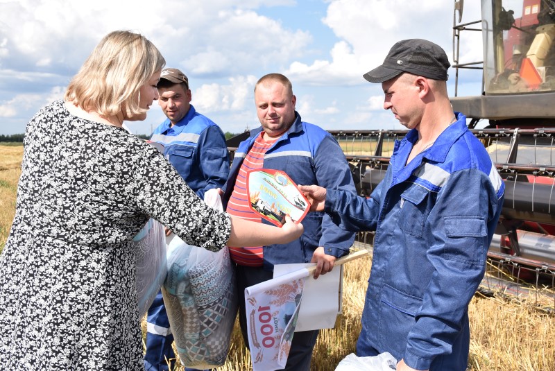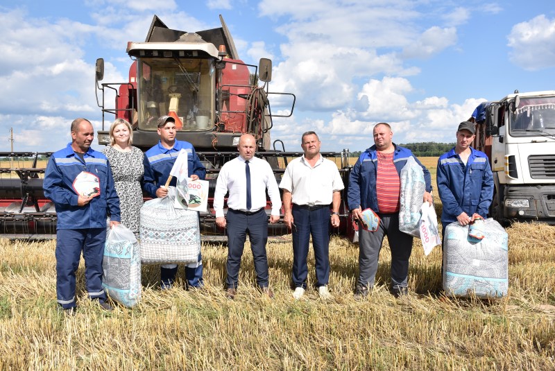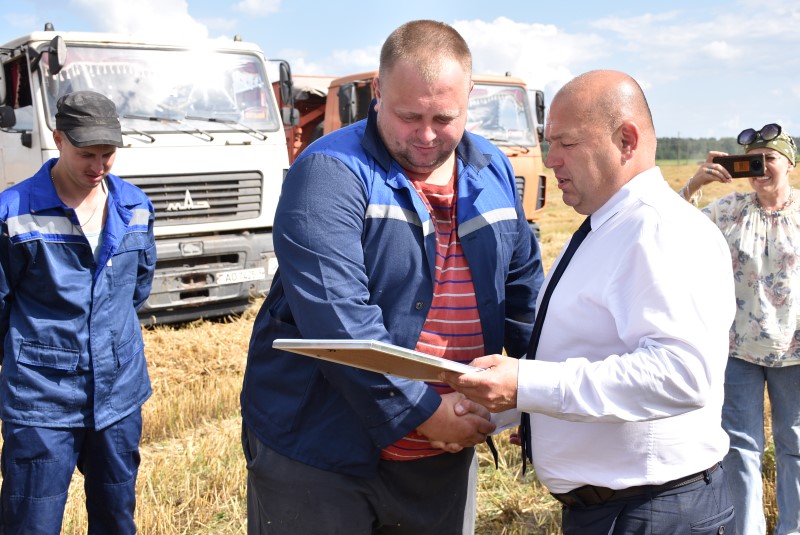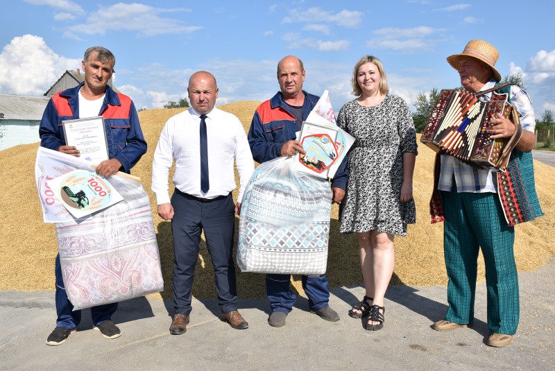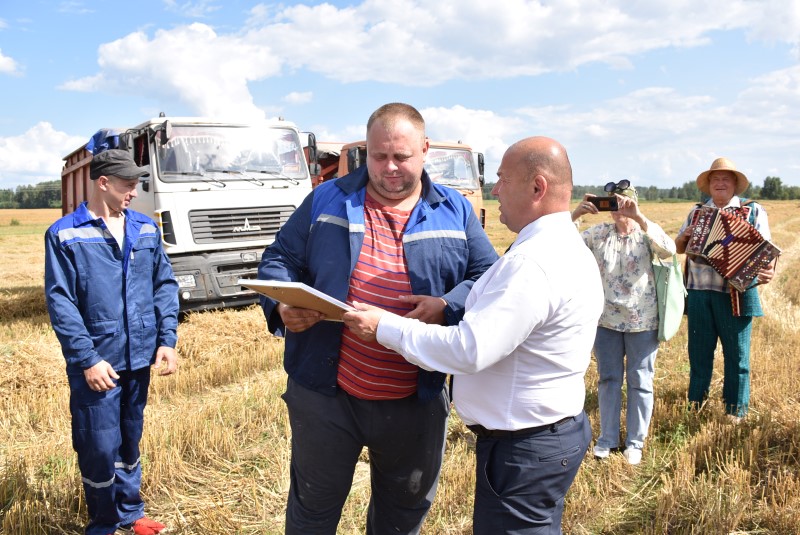 Сегодня передовиков жатвы на поле чествовали председатель районного исполнительного комитета Андрей Соколовский, представители отдела идеологической работы, культуры и по делам молодежи и профсоюза работников АПК.