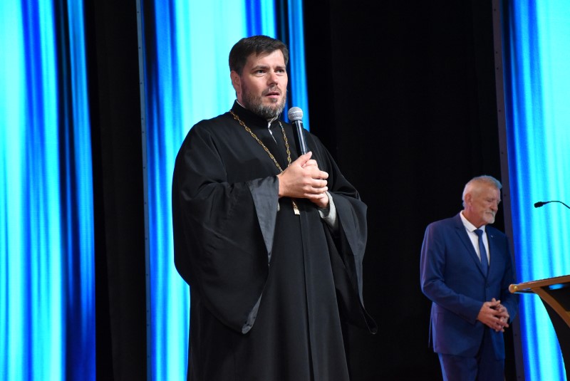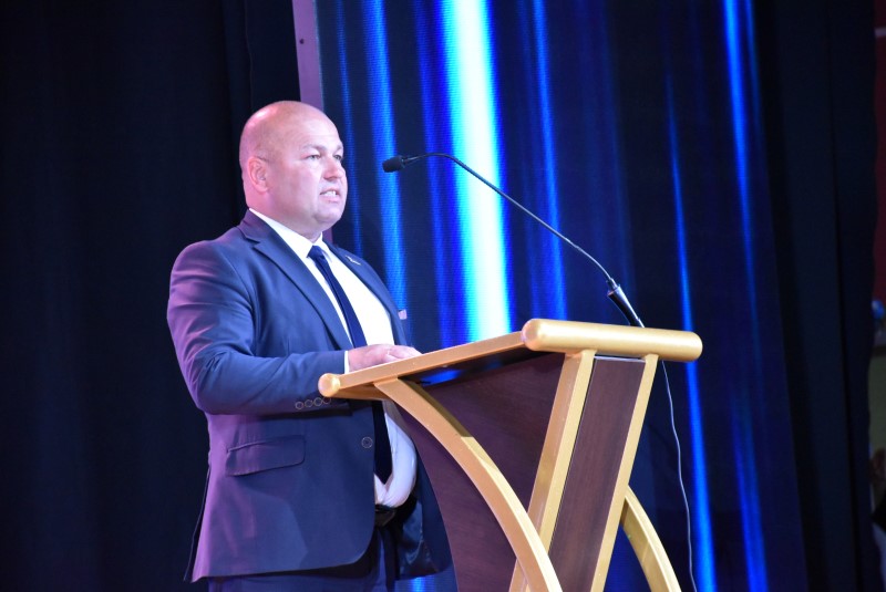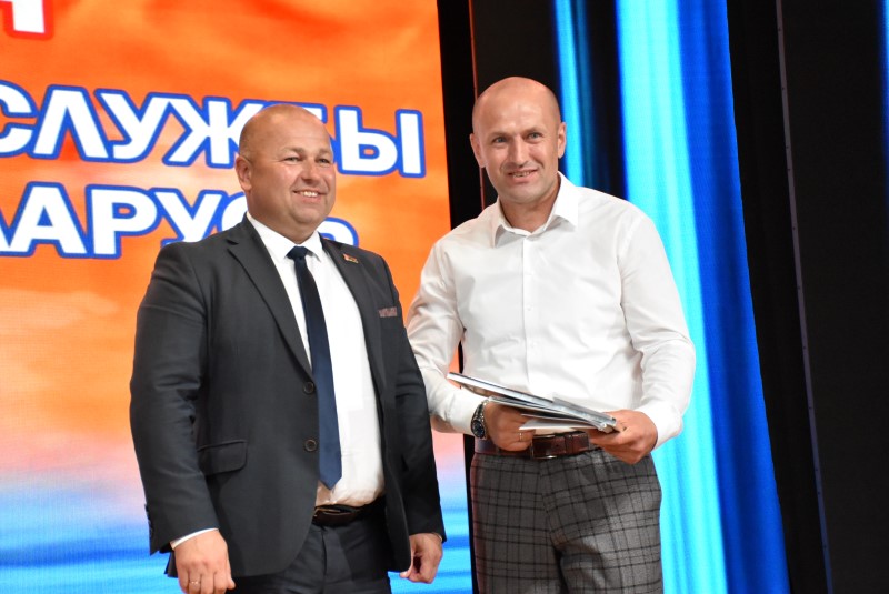 Для торжественного слова на сцену приглашается председатель Березинского райисполкома Андрей Соколовский:
