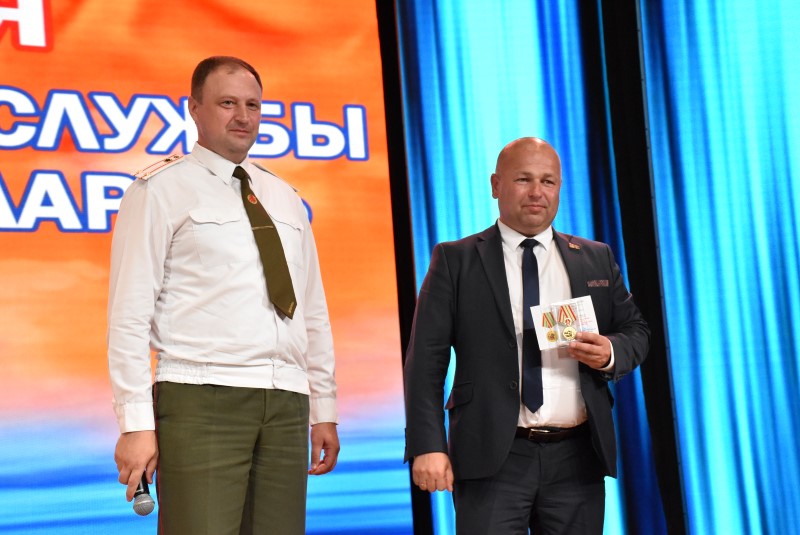 Медалью «170 год пажарнай службе» награждены старший прапорщик внутренней службы Вадим Смычок, старший инструктор-спасатель пожарного аварийно-спасательного поста №11 Березинского РОЧС и ветеран пожарной службы Сергей Яроцкий.