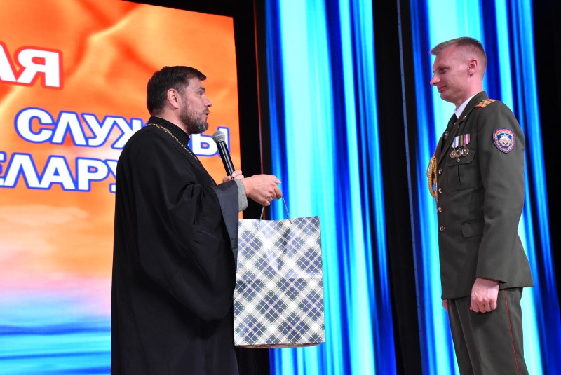 Отец Илья подарил сотрудникам РОЧС набор духовных книг, которые приятно прочитать в свободное время. Оригинальные и интересные сувениры были также от Екатерины Аврамчик и Даниила Таратина.