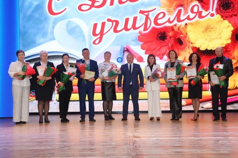 В поздравлении глава района отметил педагогов, на которых надо равняться. Это отличники образования Светлана Абрамович, Игорь Чернушевич, Ирина Бородич. А также и те, кто готовит наших детей к олимпиадам, конкурсам и спортивным состязаниям, делая этим вклад в будущее Березинщины и нашей страны: Николай Дубовик, Наталья Скуратович, Валентина Домашевич, Дмитрий Ванкевич, Людмила Макаревич, Артур Дроздовский и другие. Были отмечены также и ветераны педагогического труда, отдавшие лучшие годы своей жизни благородному делу, в числе их Иван Кошман, Дмитрий Мозгов, Валерий Коростелёв, Галина Цвилик и многие другие.