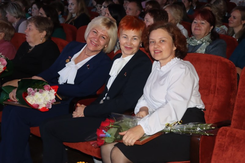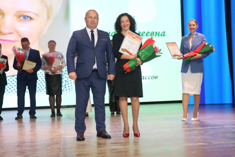 Со словами поздравления педагогов и учителей на сцену поднялась начальник управления по образованию, спорту и туризму Березинского райисполкома Алеся Титова. Алеся Алексеевна также подчеркнула важность и актуальность профессии учителя, и вручила награды управления многим работникам сферы образования.