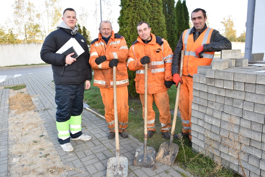 В районе филиала ДУП «Мадикор» восстанавливают тротуарную плитку и асфальтобетонное покрытие после ремонта прокладки кабеля, в планах также провести здесь озеленение. Тут трудятся Сергей Медушевский, Иван Богомаз, Сергей Дюбайло. Мастер Павел Липень – молодой специалист, учится заочно по специальности инженер-проектировщик в БНТУ. Пришёл в организацию совсем недавно, ещё не прошло и месяца, но по его заверению, работа нравится, всё устраивает. Руководство желает молодому специалисту только трудовых успехов.