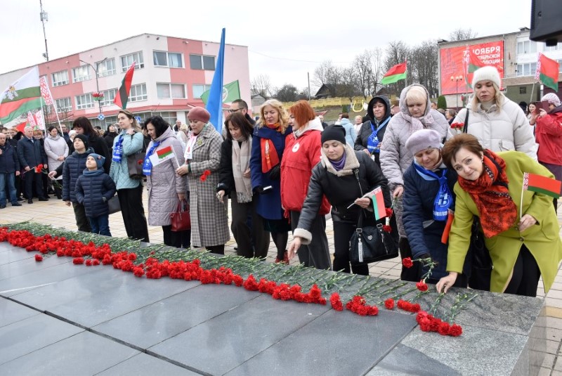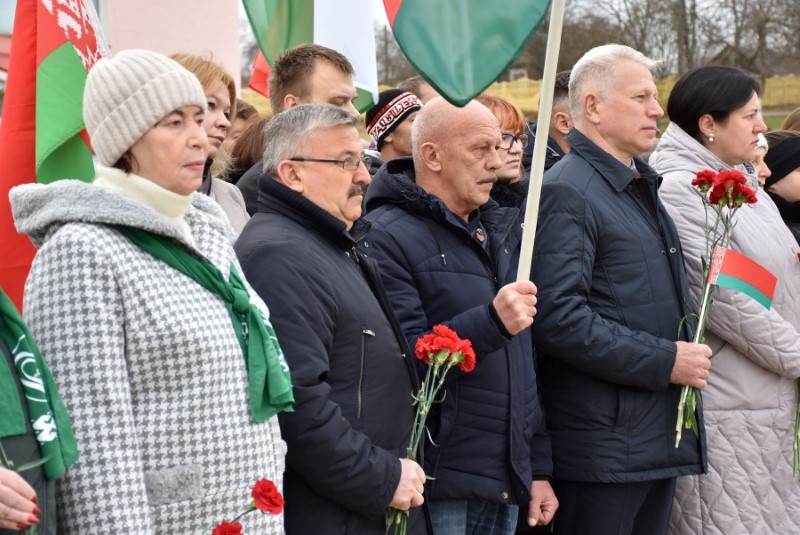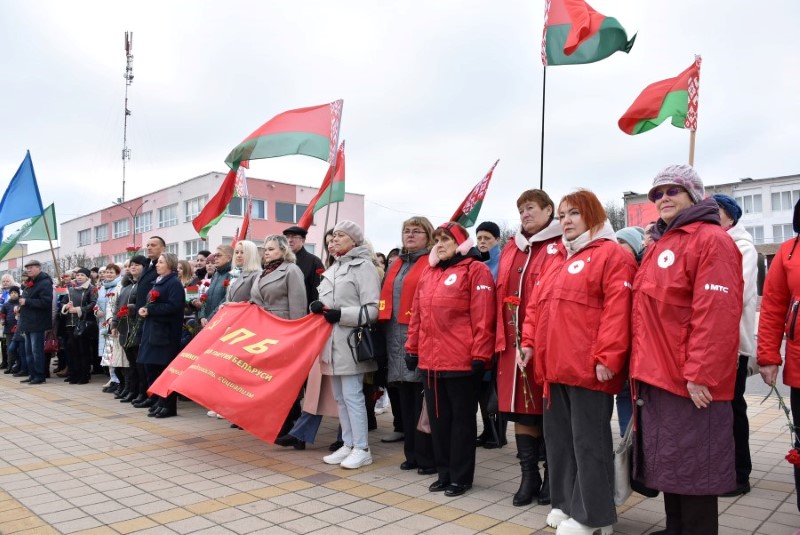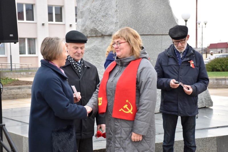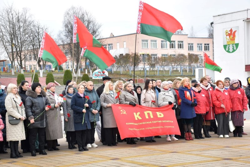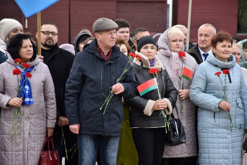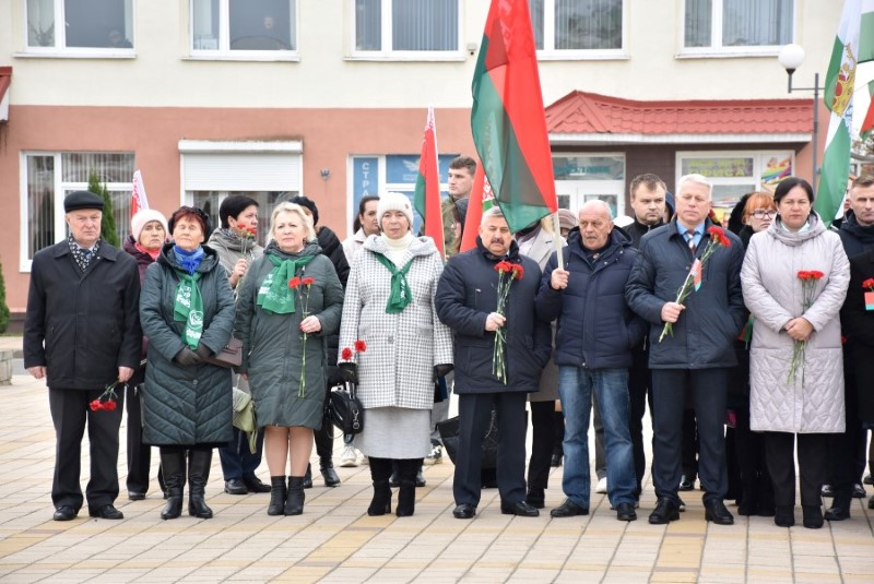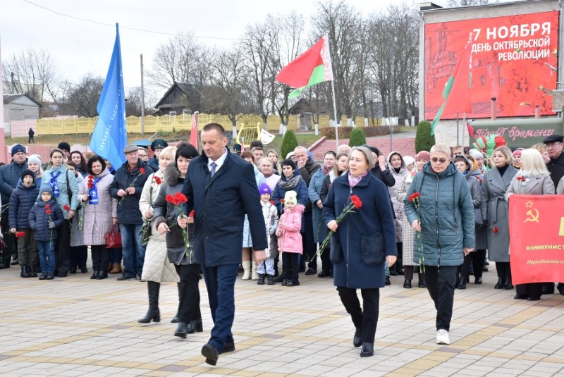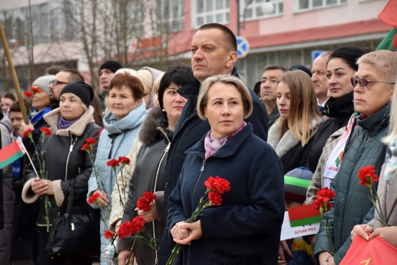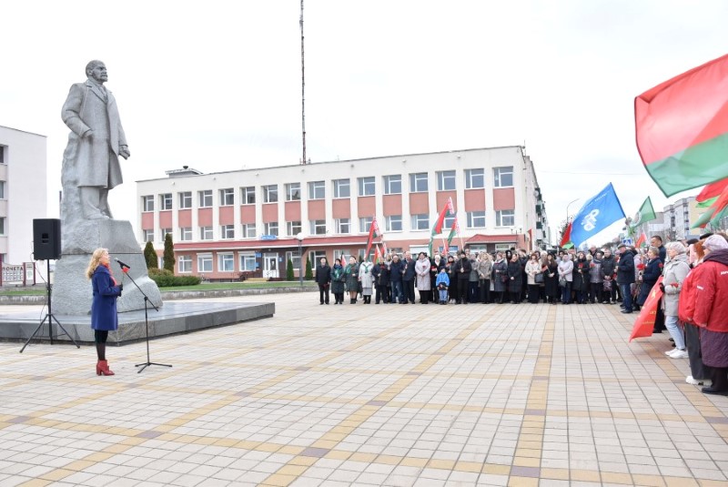 Завяршыўся ўрачысты мітынг традыцыйным ускладаннем кветак да падножжа помніка Уладзіміру Ільічу Леніну.